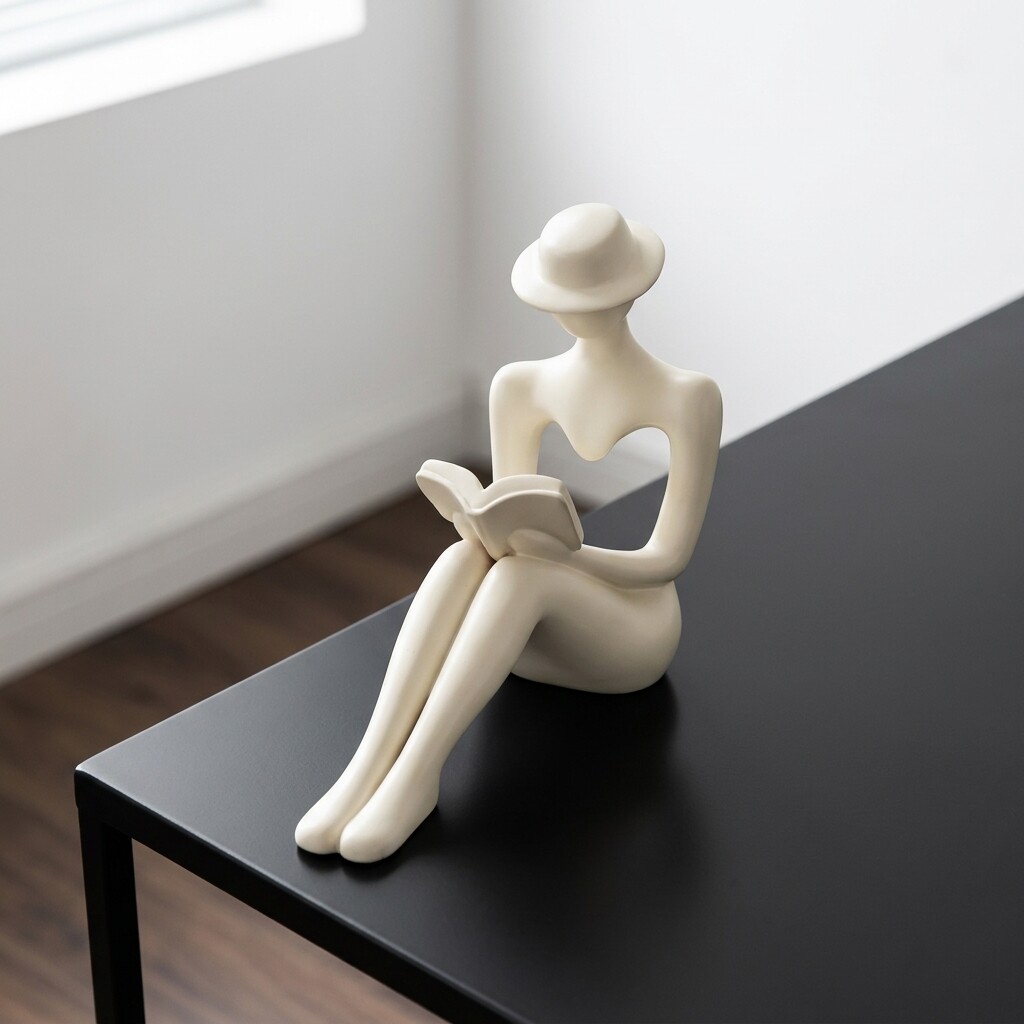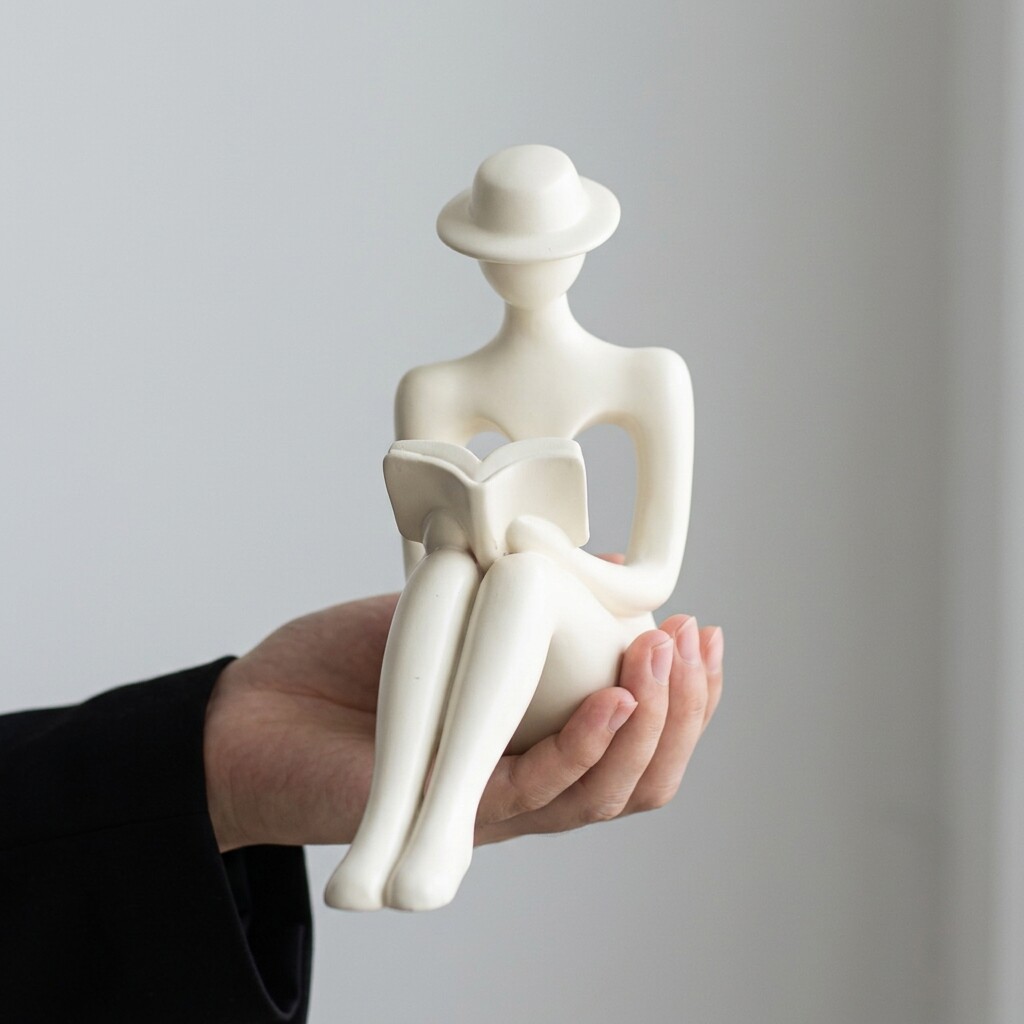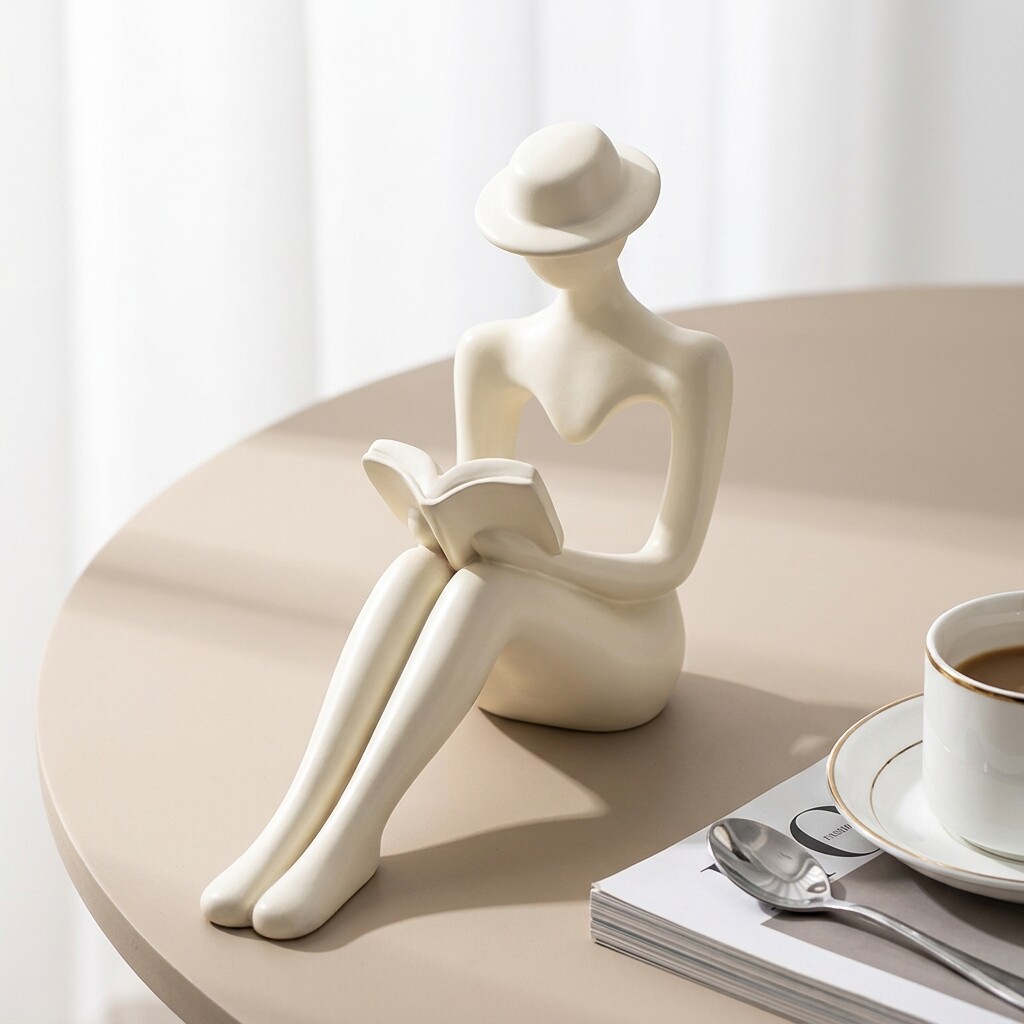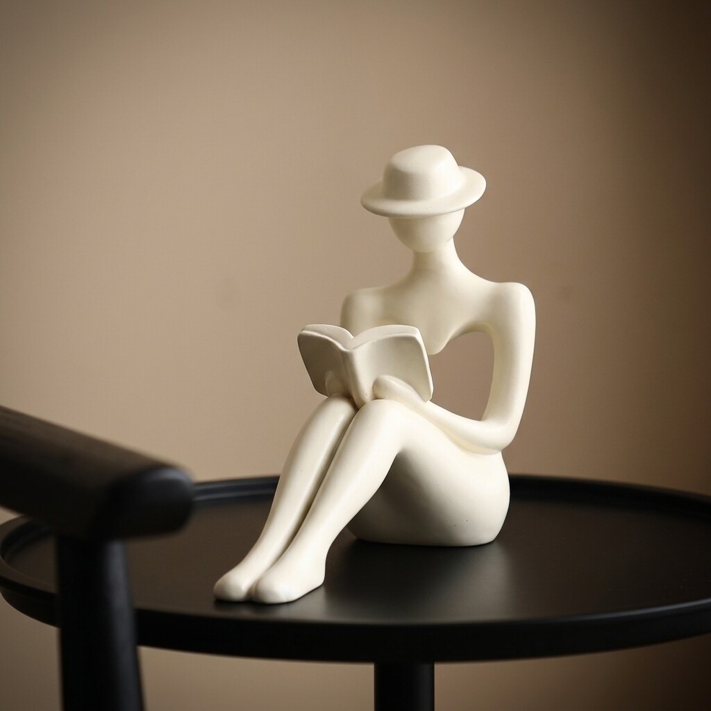 创意陶瓷人物雕塑摆件白色简约装饰品书房客厅艺术品