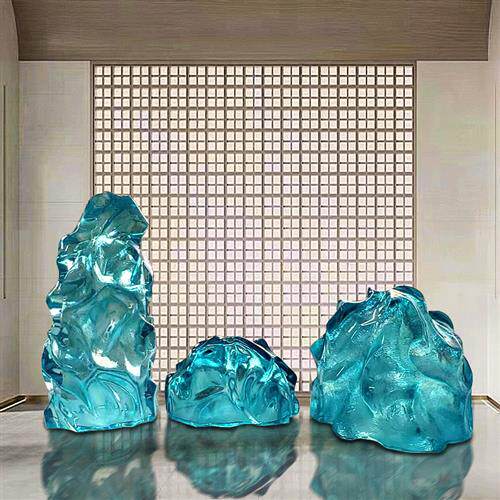 定制透明树脂景观石头摆件酒店别墅售楼处庭院水池造景雕塑装饰品