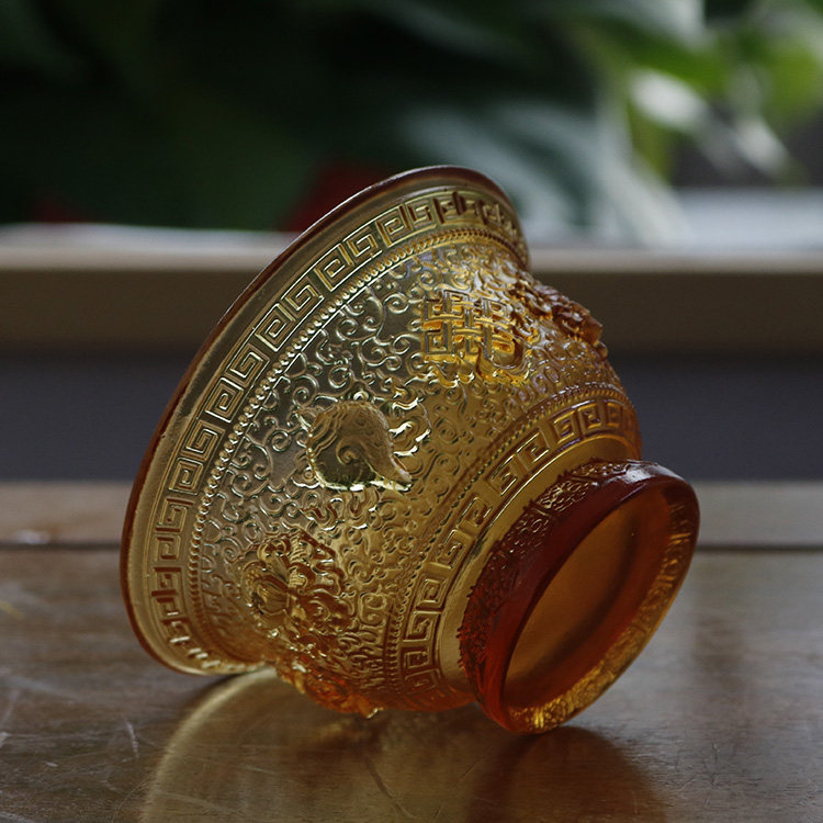 禅悦八吉祥七色古法琉璃供碗贡杯彩色中号供具家用桌面摆件佛具