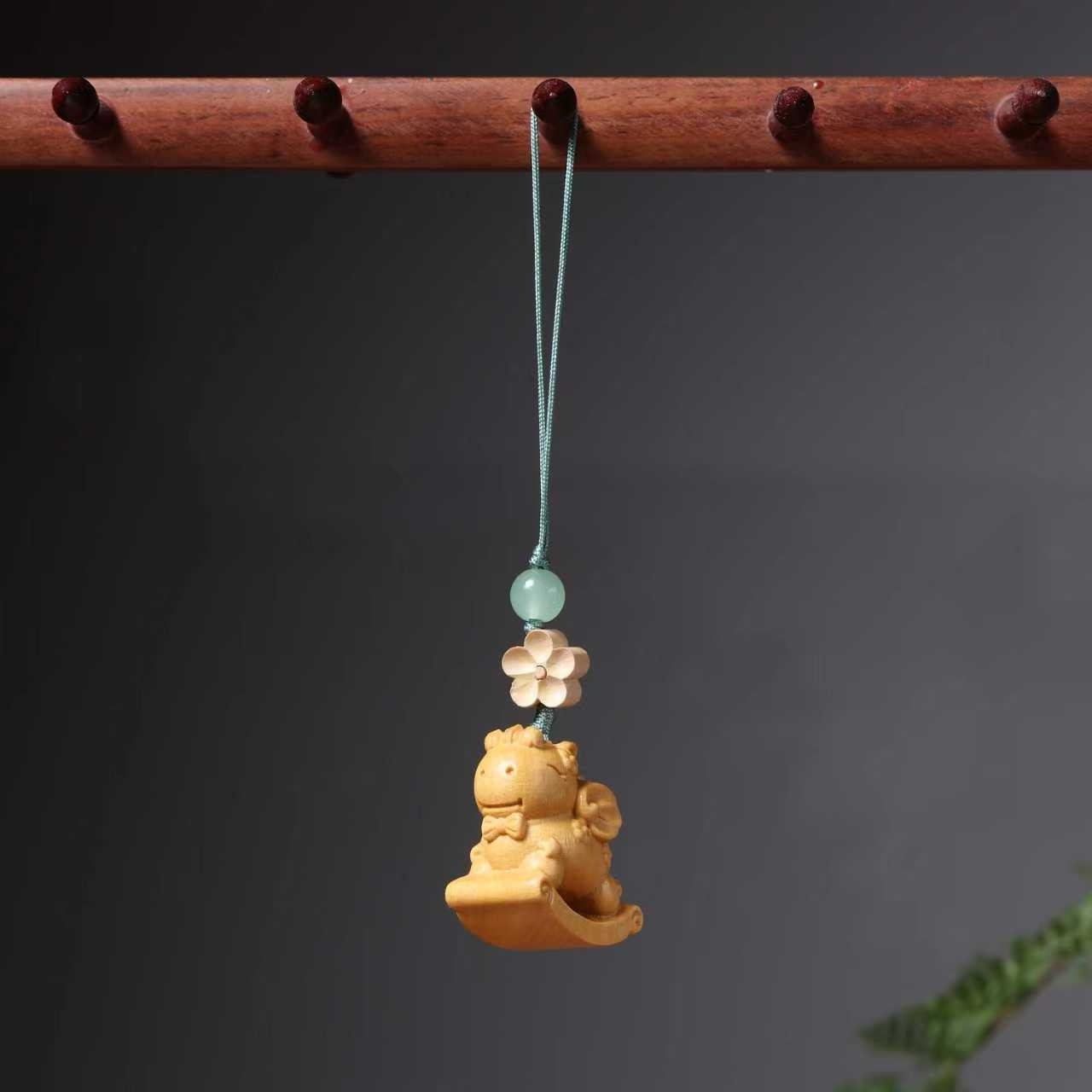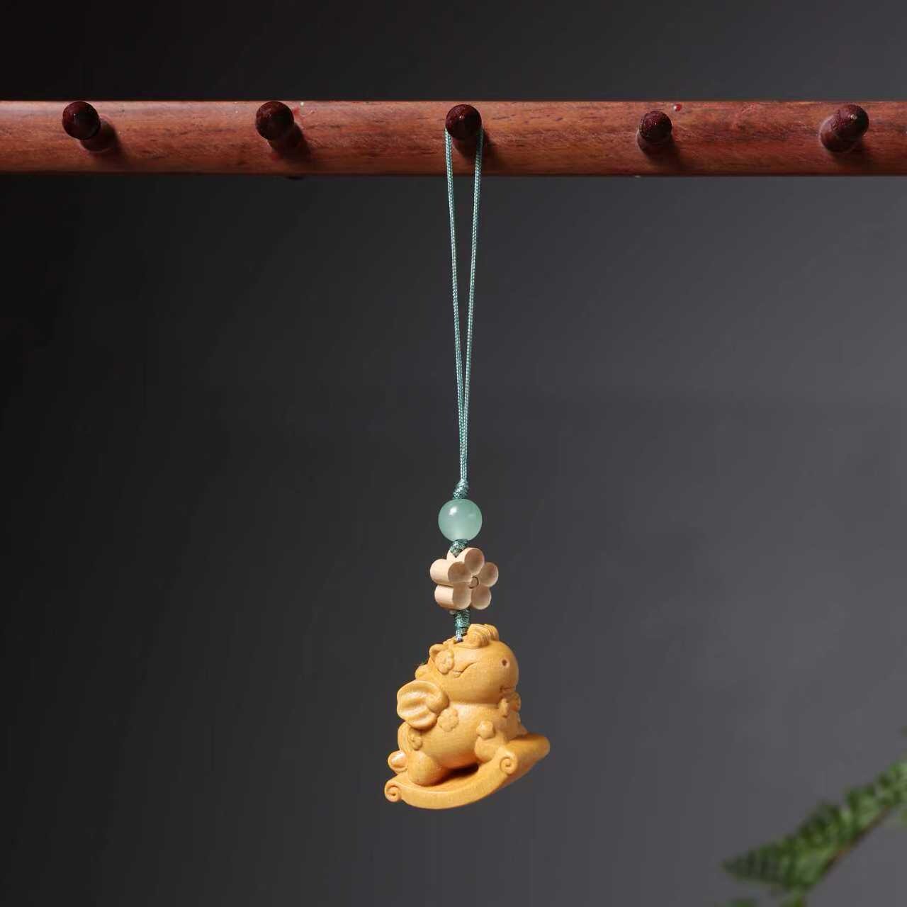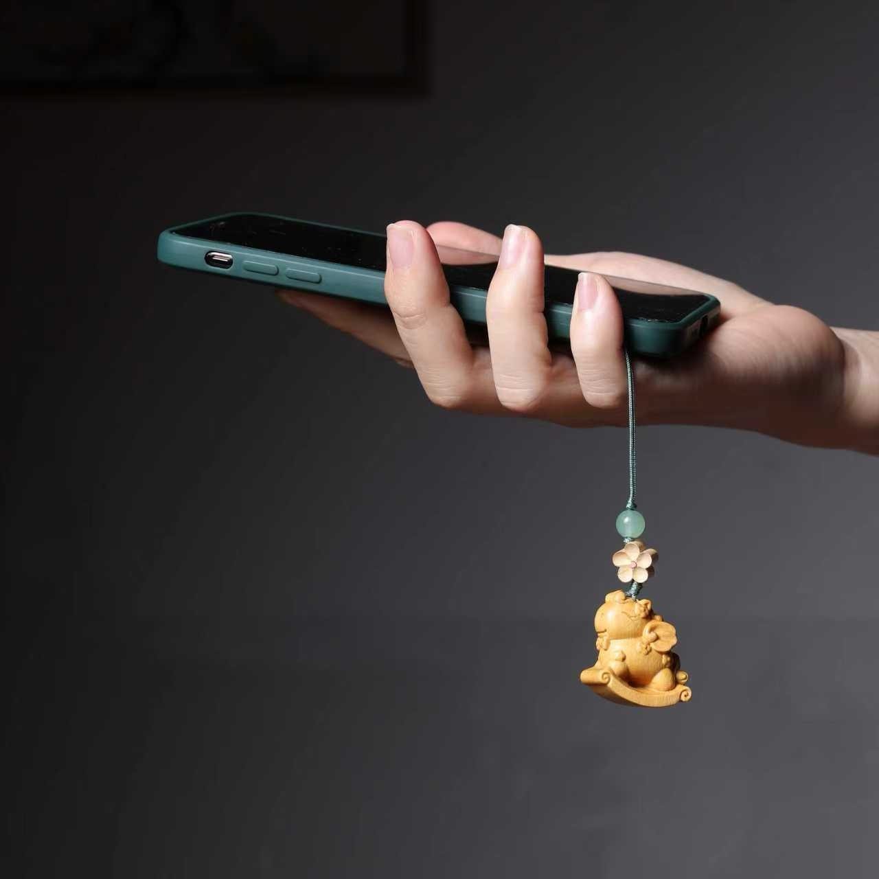 黄金檀木雕刻马上有钱花手机包包吊坠卡通生肖马本命年男女挂件饰