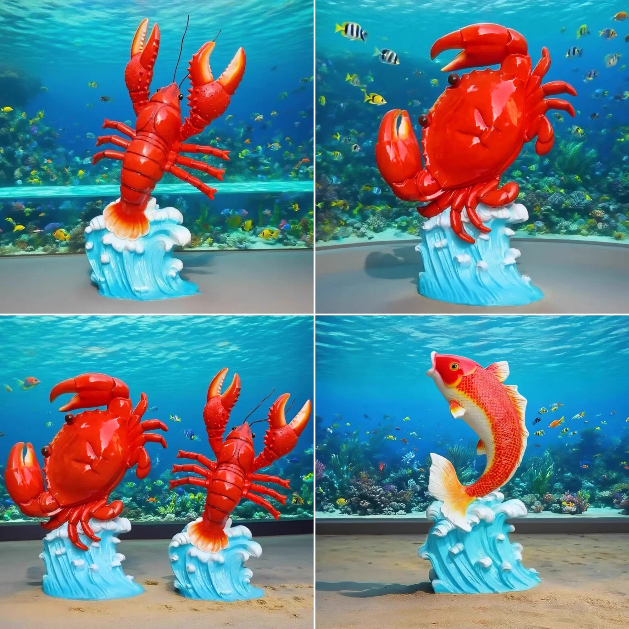 仿真螃蟹玻璃钢雕塑发光烧烤海鲜馆模型创意门头招牌装饰大型摆件