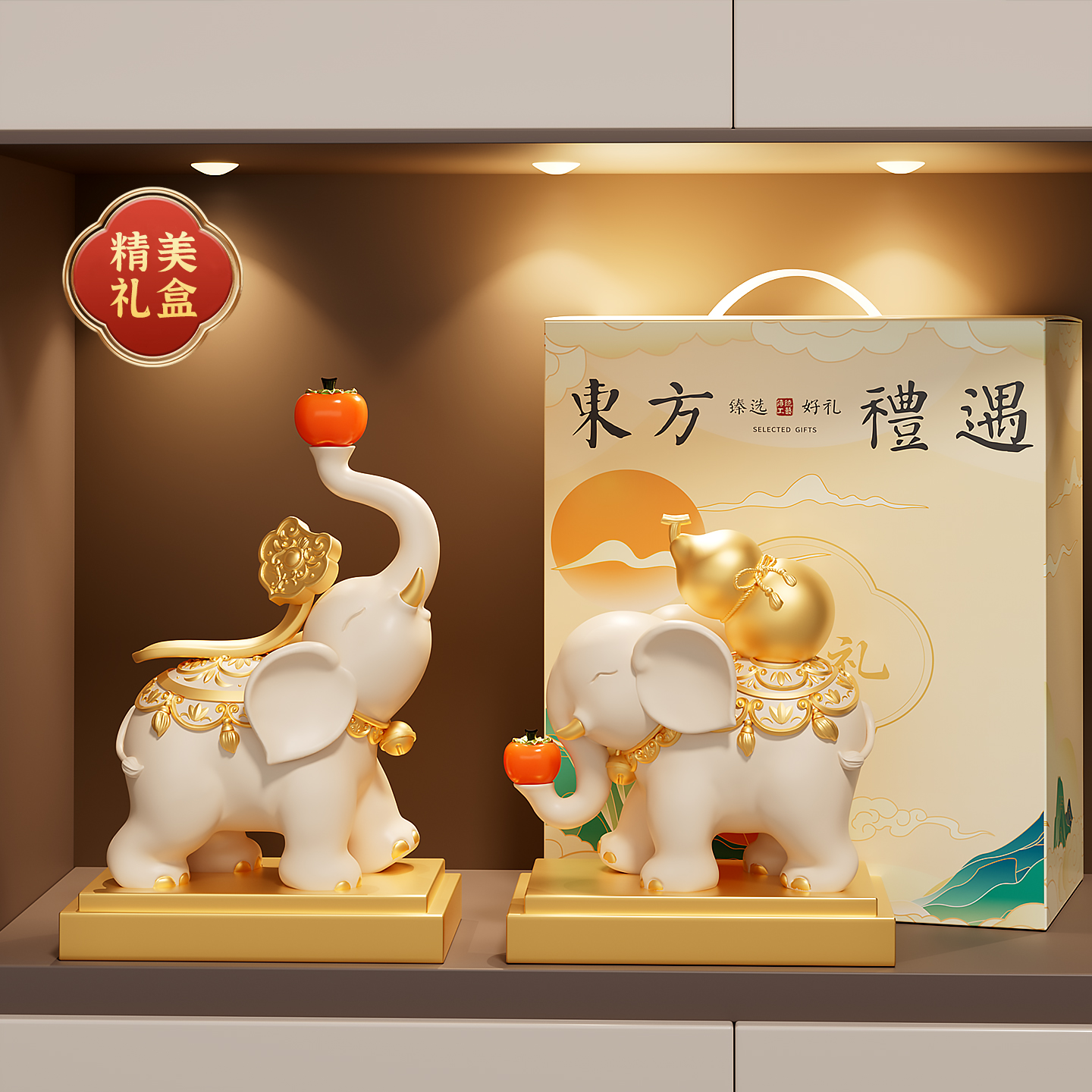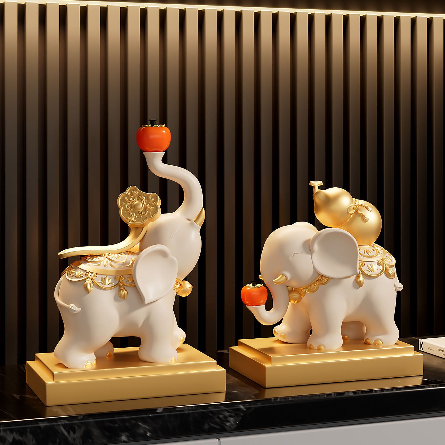 柿柿如意大象摆件客厅轻奢高档电视柜酒柜装饰品招财乔迁新居礼物