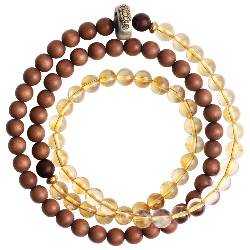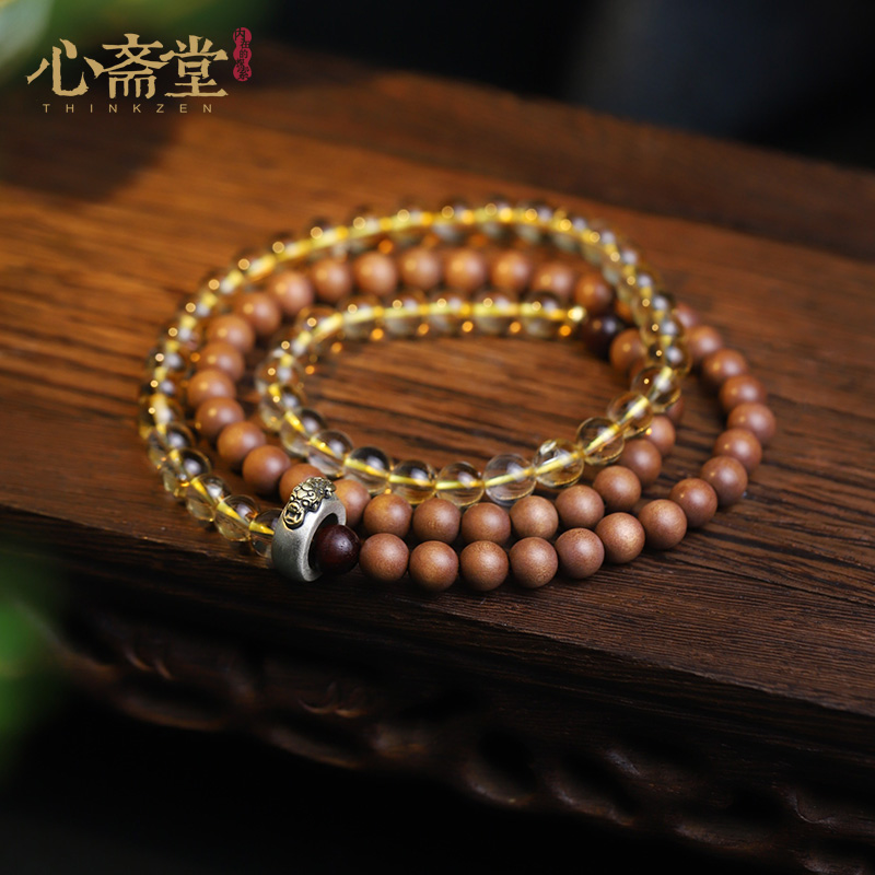 心斋堂【禅者】印度老山檀香手串老料檀木手链女黄水晶本命佛礼物
