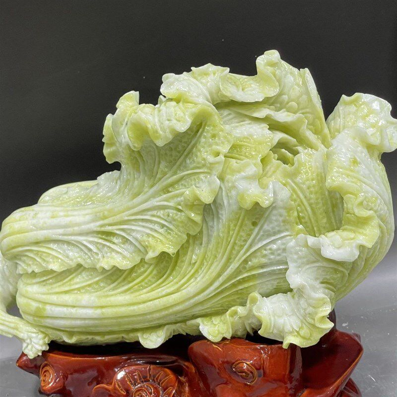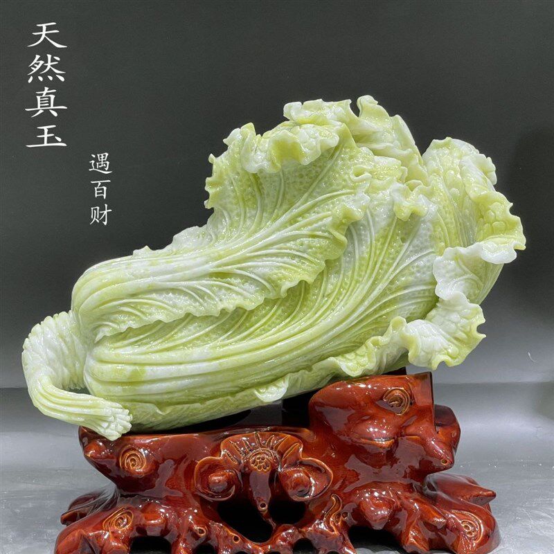天然白绿色玉白菜摆件招财玉石岫玉新中式家居装饰酒柜办公室摆设