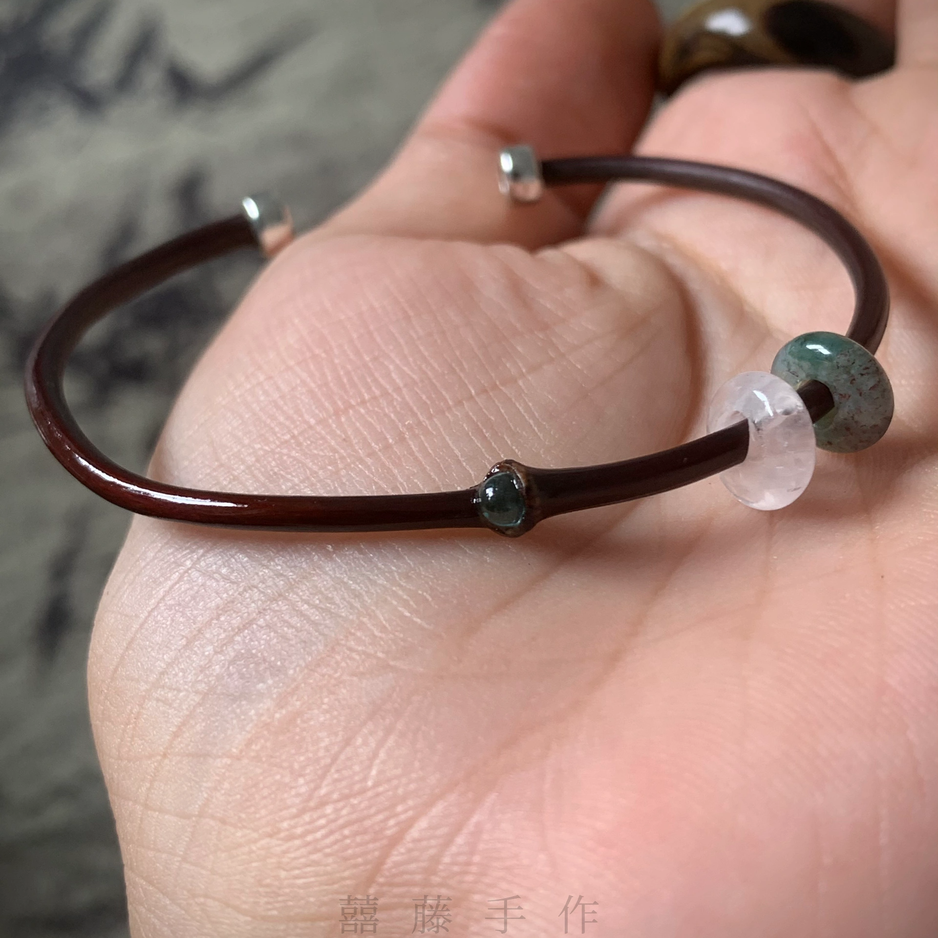 3mm细款天然真鸡血藤手镯子紫竹根木质手环男女情侣生日礼物藏式