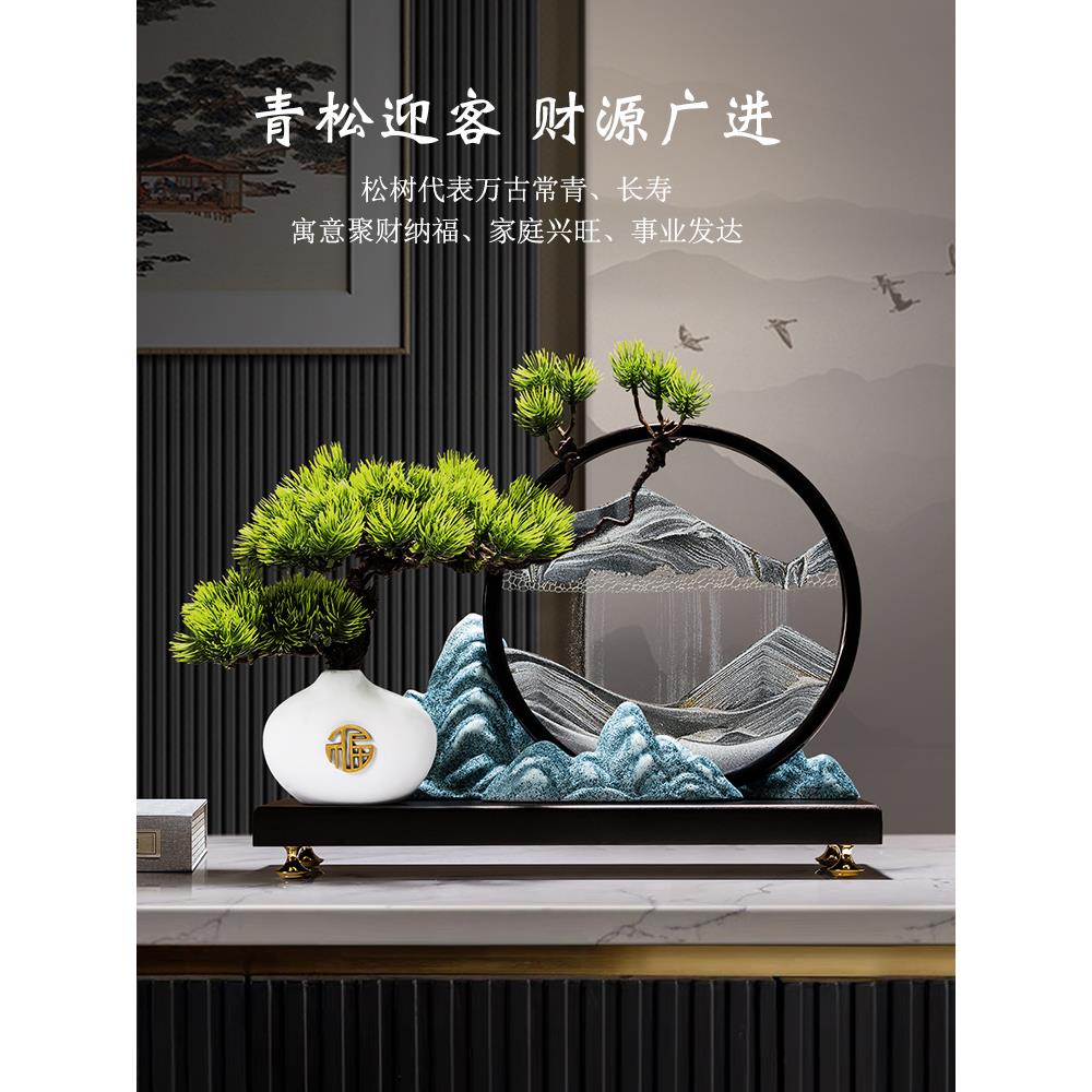 迎客松流沙画摆件客厅玄关办公室桌面茶室装饰品开业乔迁新居礼品
