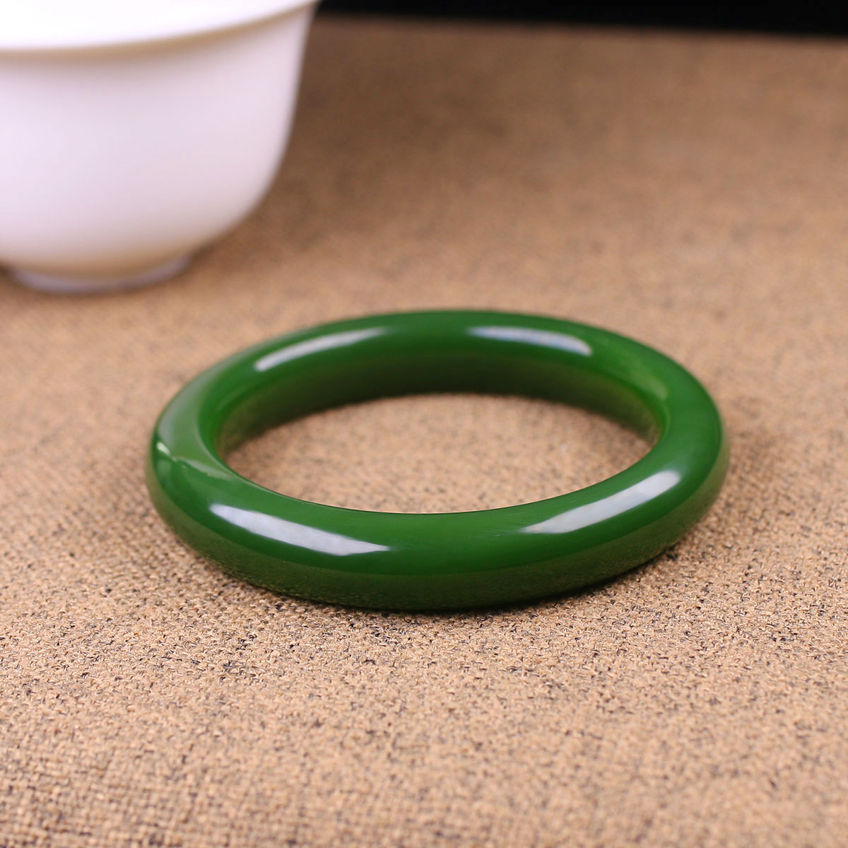(古晨珠宝)俄罗斯和田玉阳绿碧玉手镯润玉缘女款玉镯54g55mm