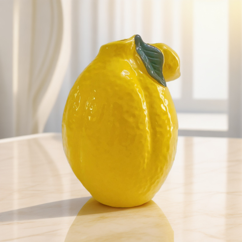 柠檬陶瓷花瓶摆件北欧ins风水培插花花器家居清新桌面装饰工艺品