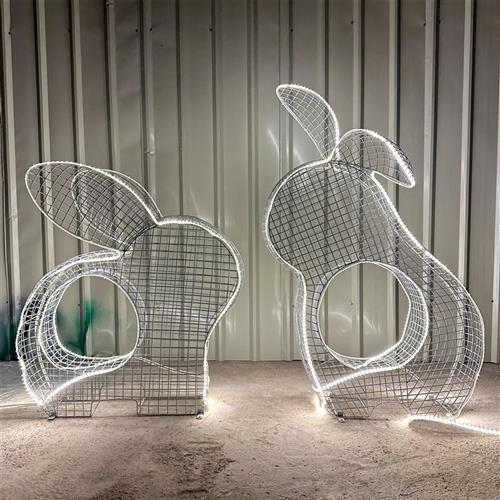 园林景观铁艺镂空兔子雕塑小区地产草坪装饰品抽象不锈钢动物摆件