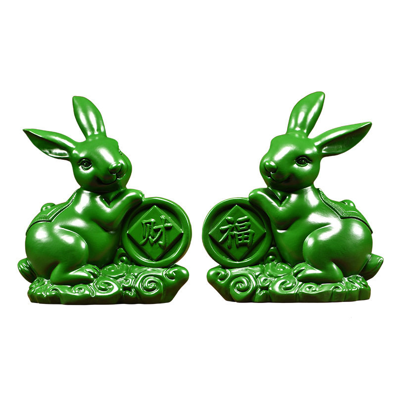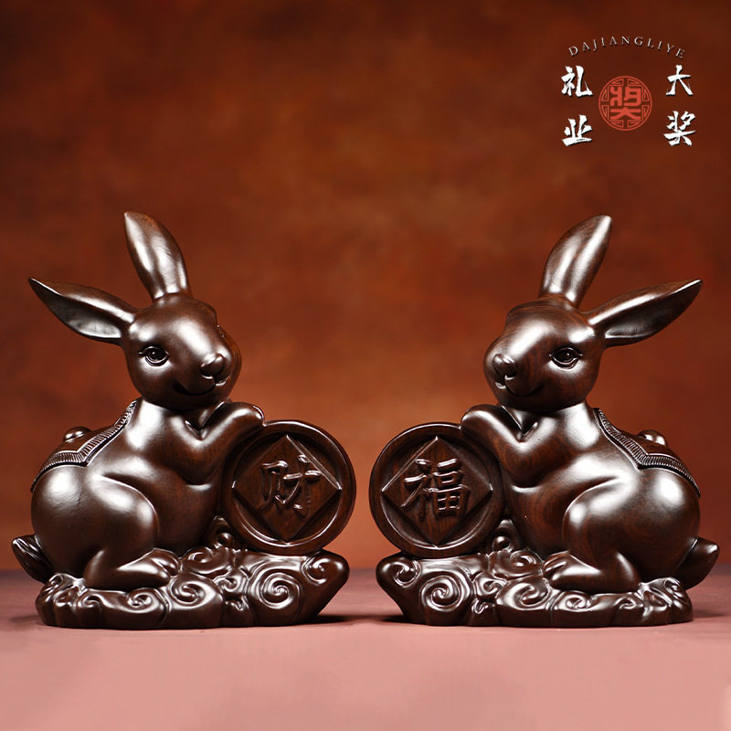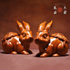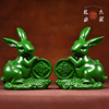 绿色实木福财兔子摆件花梨木雕刻生肖兔子家居客厅红木装饰工艺品