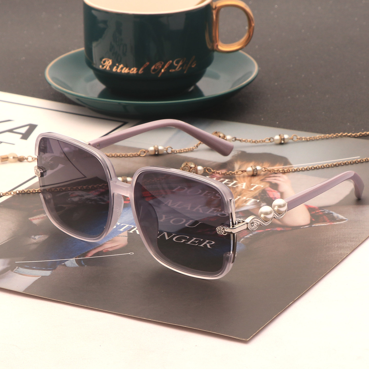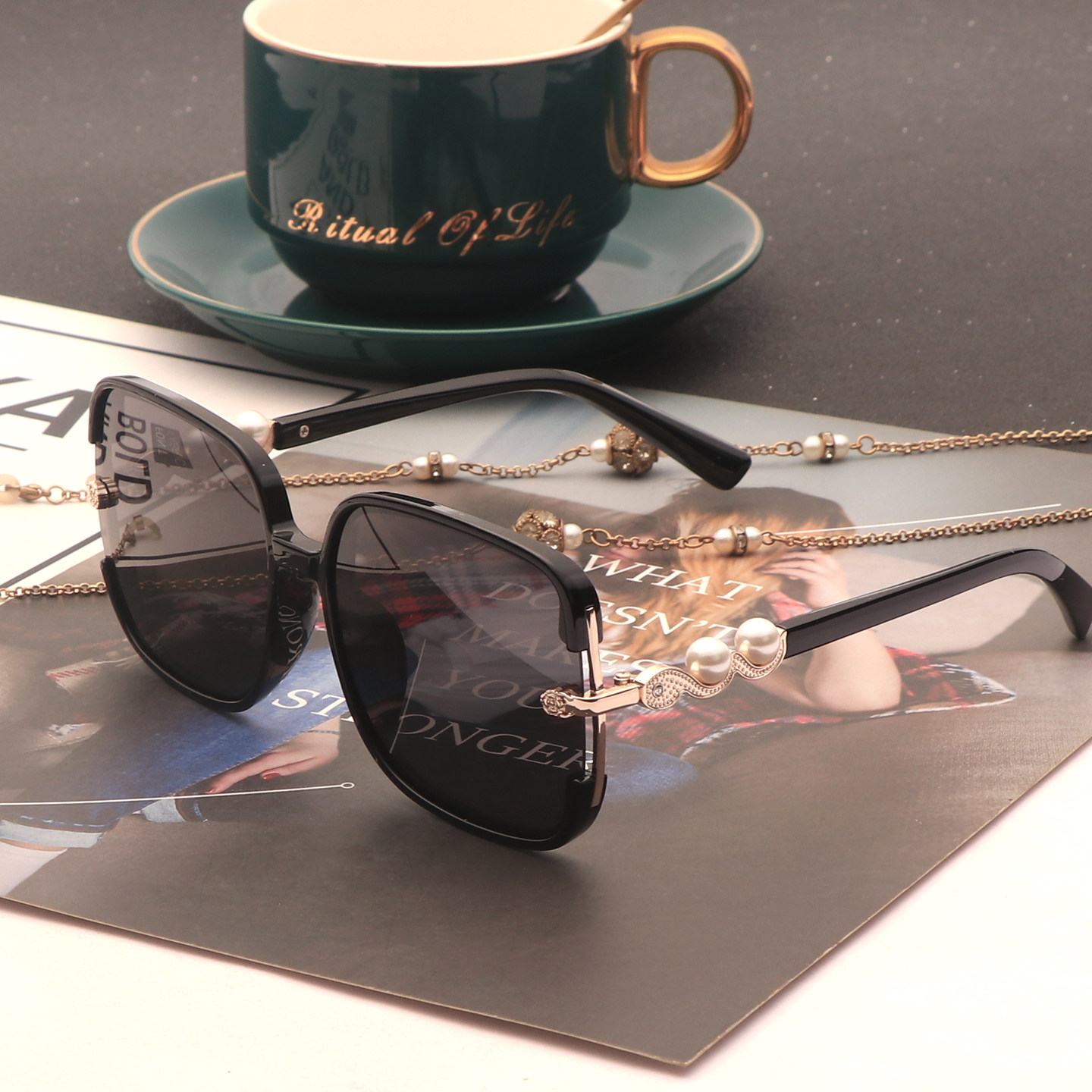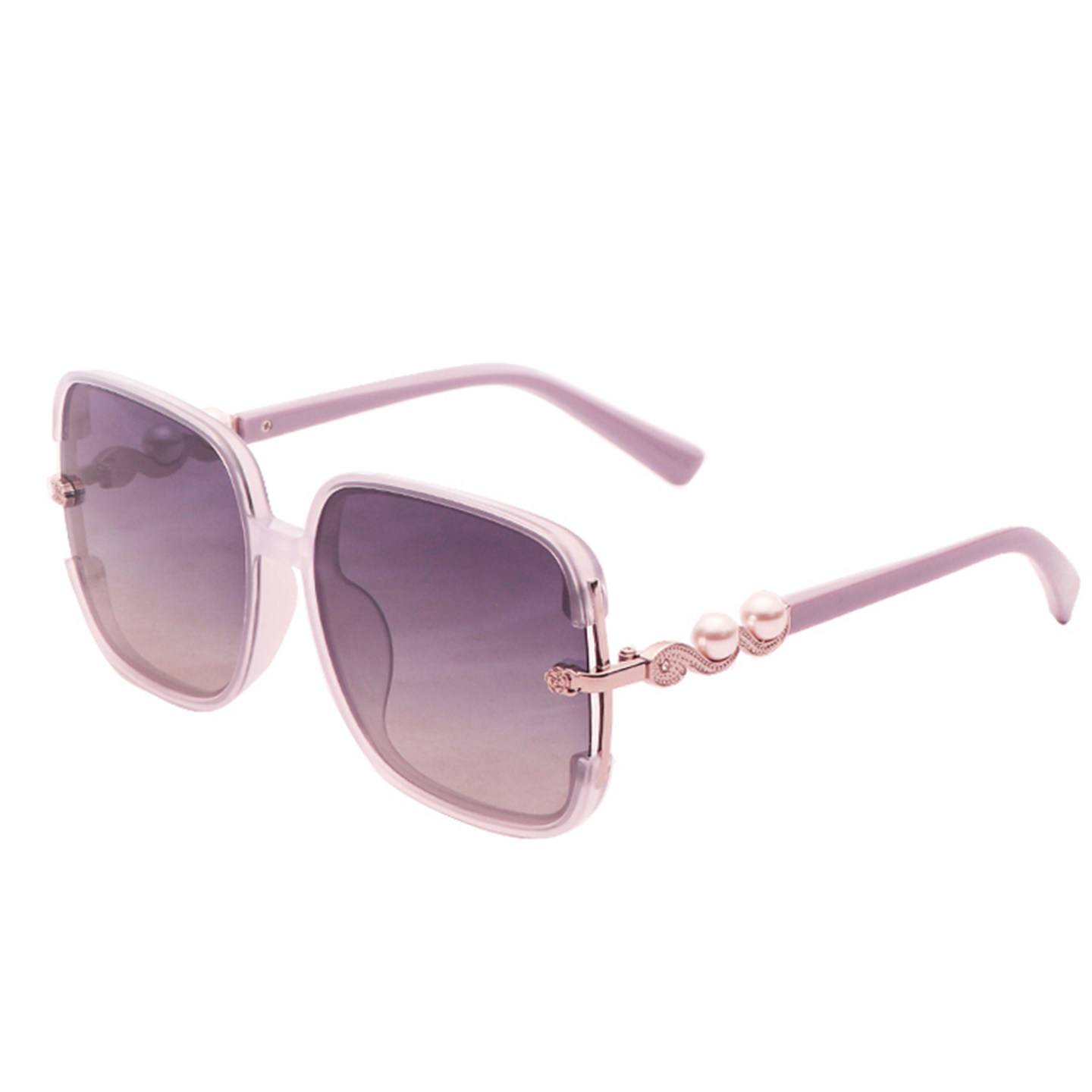 新款防晒白色墨镜女潮高级感方圆脸显瘦偏光太阳眼镜优雅珍珠开车
