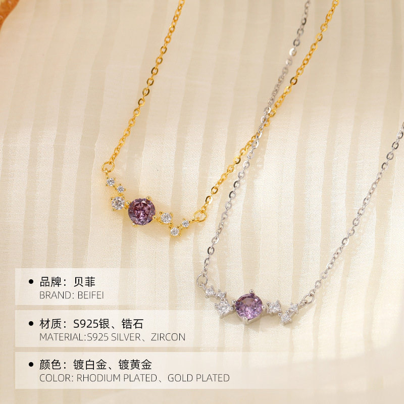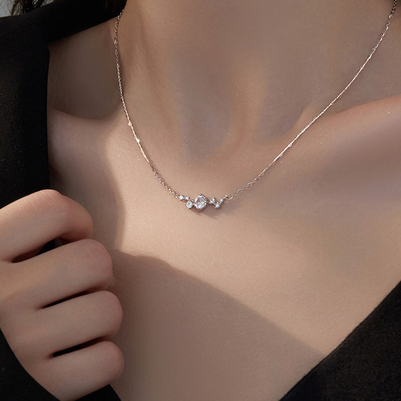 日系topwhit925银紫色锆石项链女星云点点星光锁骨链轻奢高级