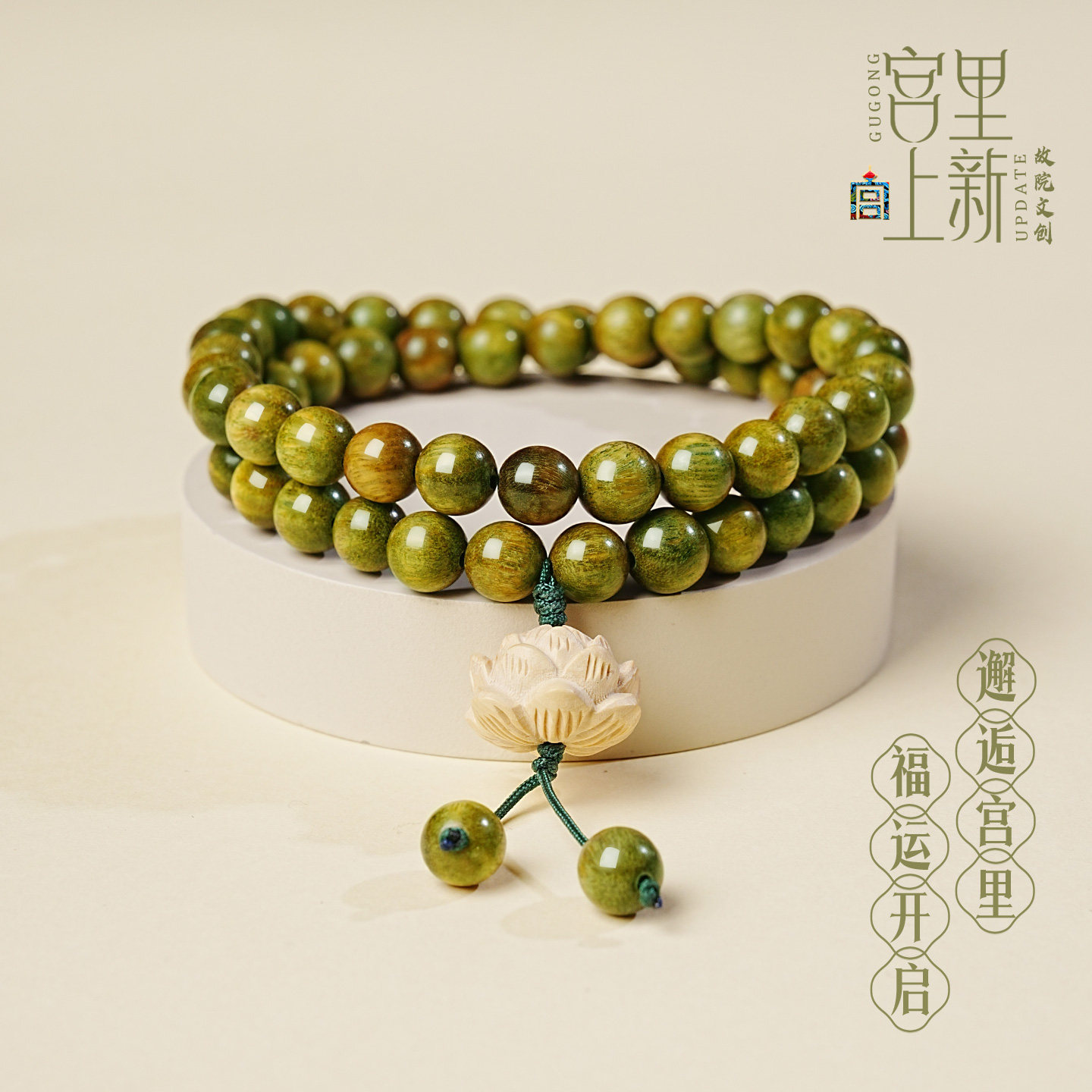 宫里上新绿檀木手串女款木质檀木檀香文玩佛珠手链绿色生日礼物