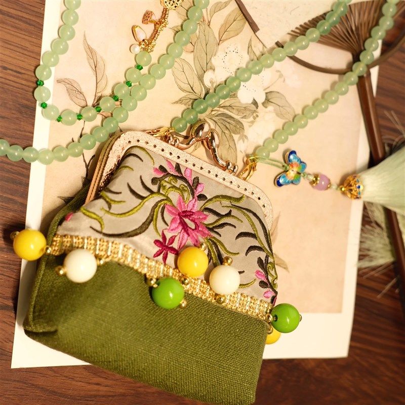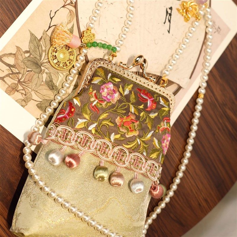 春季新款新中式国风手工刺绣花斜挎链条手机包女包