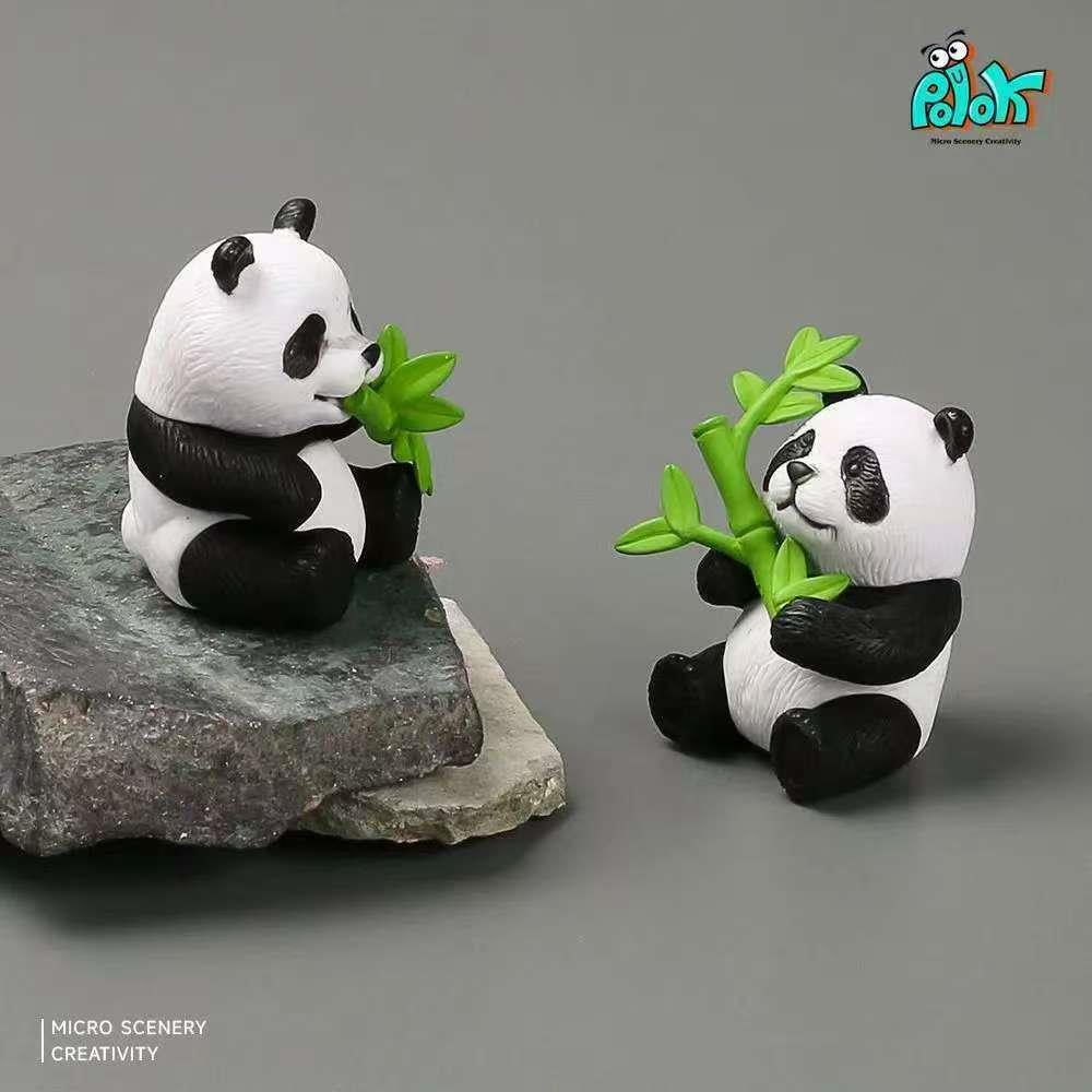 治愈桌面小摆件动物仿真可爱竹子熊猫动物模型公仔车载装饰配件