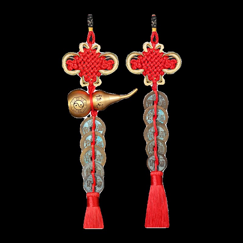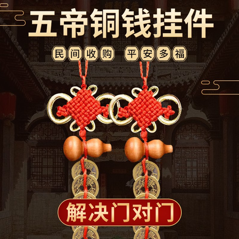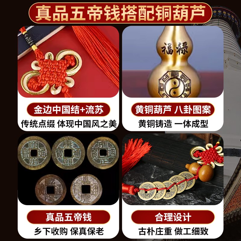 五帝钱门对门铜葫芦开盖朱砂真品纯铜摆件家大门吉祥结铜钱串挂件