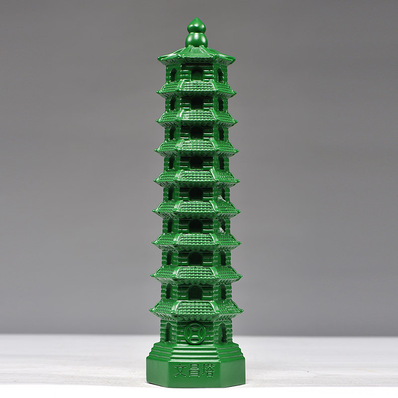 绿色木雕文昌塔摆件实木质9层文昌塔客厅办公摆设开业送礼工艺品