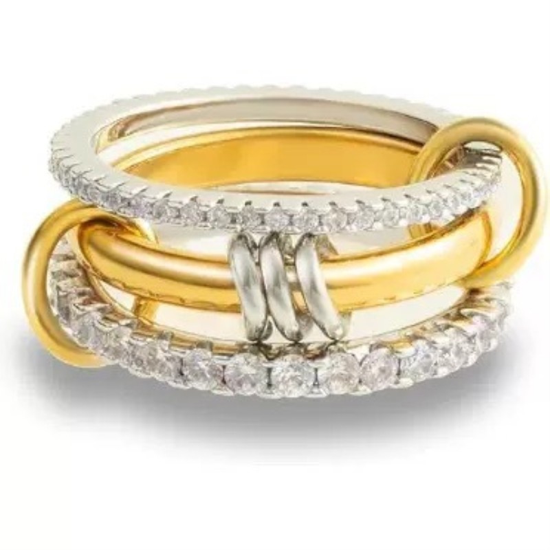跨境爆款不锈钢环环相扣满钻锆石戒指双色多元素新款跨境爆品