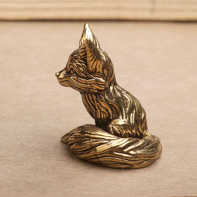 纯黄铜狐狸饰品小狐狸办公室客厅桌面装饰茶宠物车工艺品
