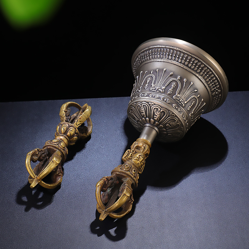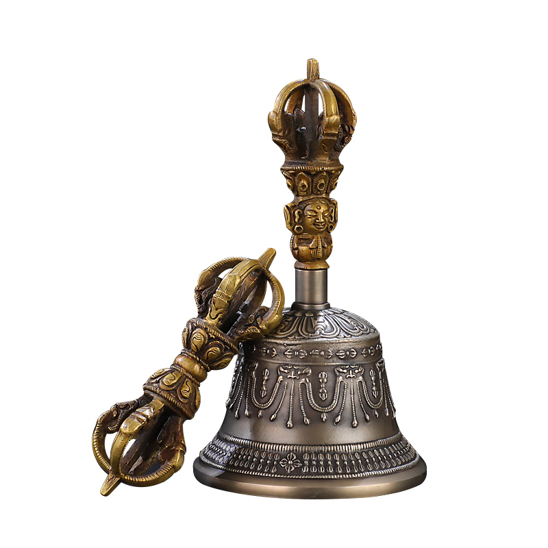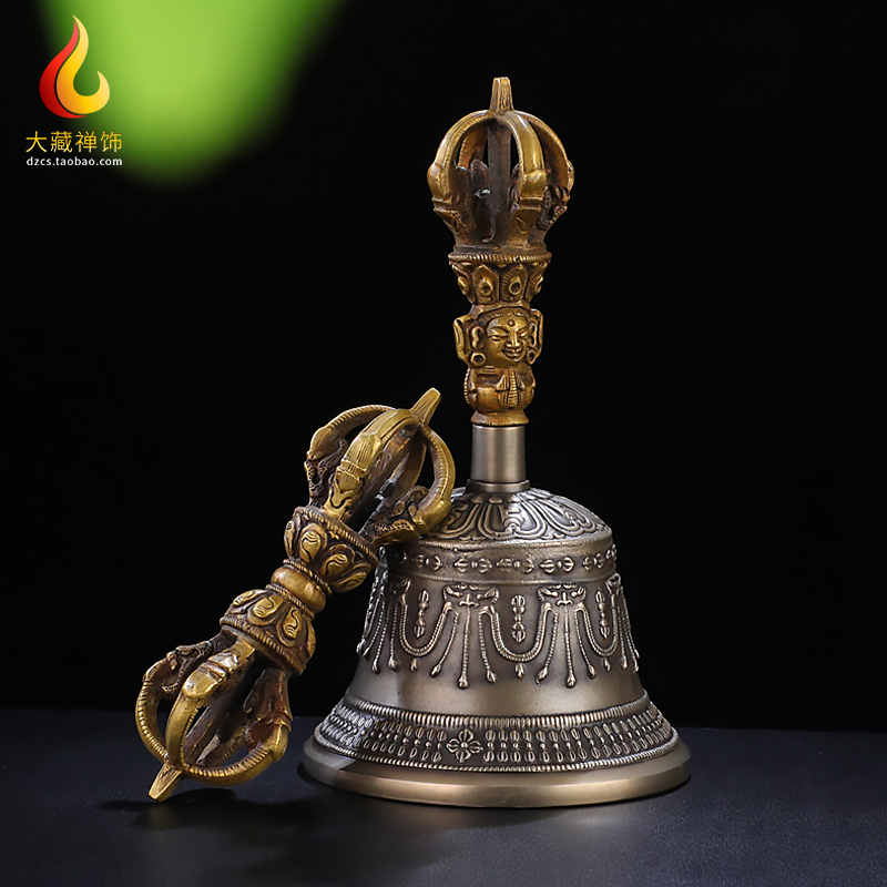 尼泊尔金刚铃杵西藏式民族风五股铃铛摆件藏传密宗纯青铜法器用品