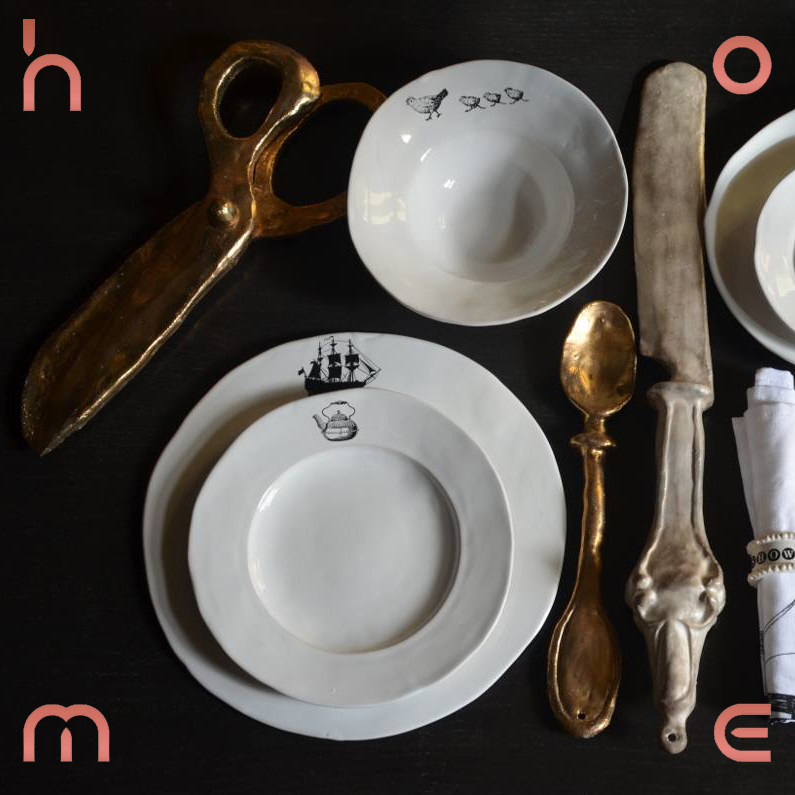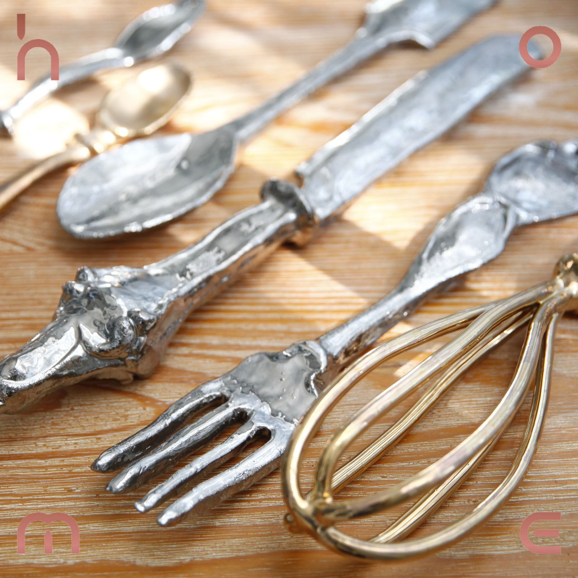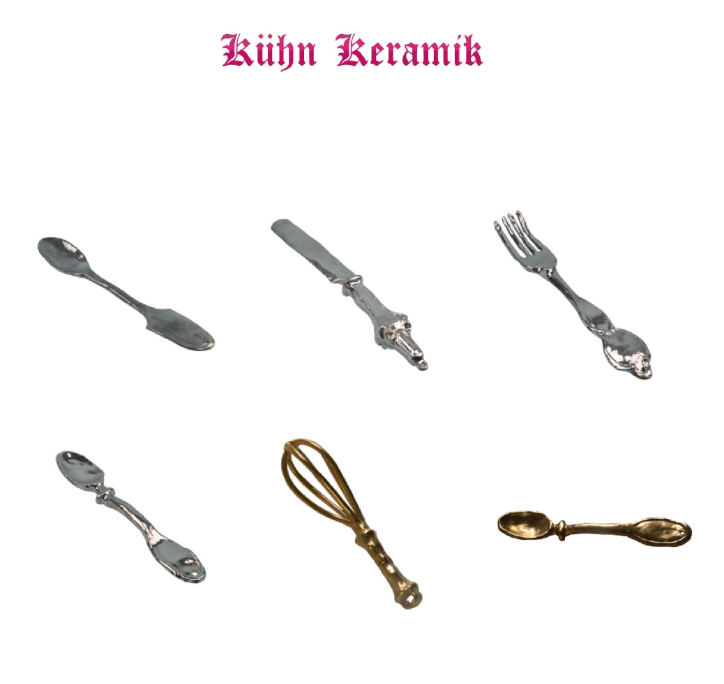 现货 德国Kuhn Keramik 异想天开手工陶瓷描金大型刀叉勺装饰摆件