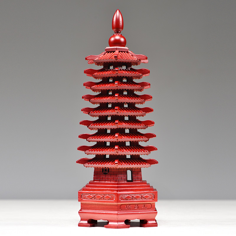 红色桃木雕刻九层文昌塔摆件木质十三层9层木制客厅书桌书房工艺
