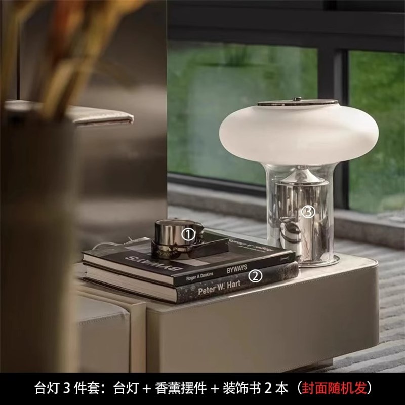 轻奢样板房间边几床头柜摆件高A级感台灯托盘花瓶桌面组合软装饰