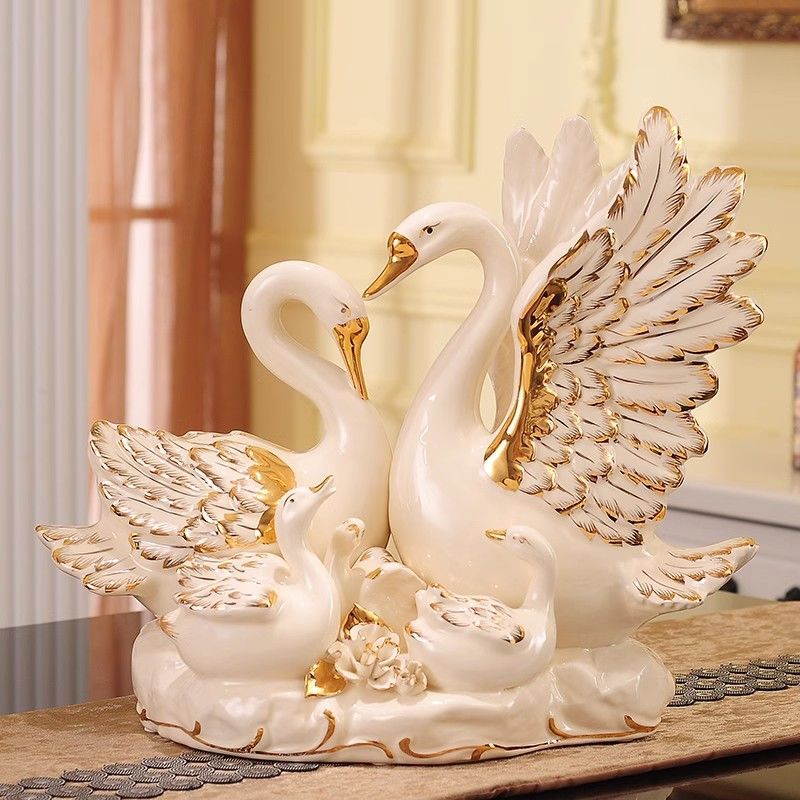 欧式陶瓷天鹅摆件结婚礼物实用闺蜜创意新婚酒柜送新人家居装饰品