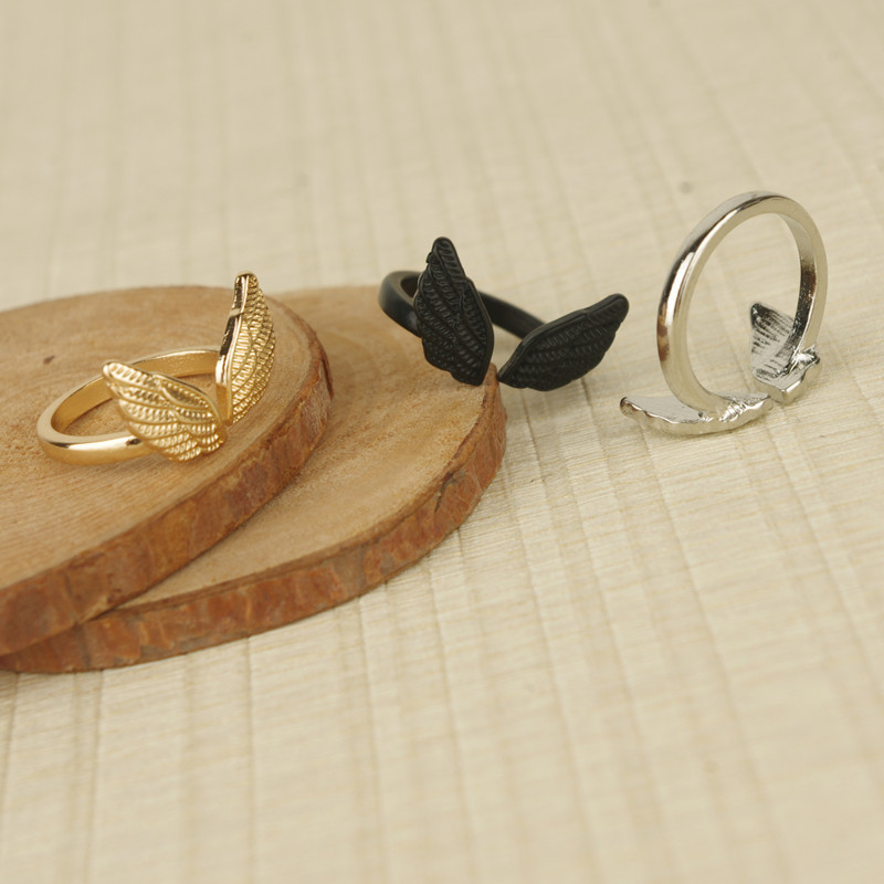 欧美新品 朋克甜酷风格简约天使翅膀合金开口戒指指环女ring首饰
