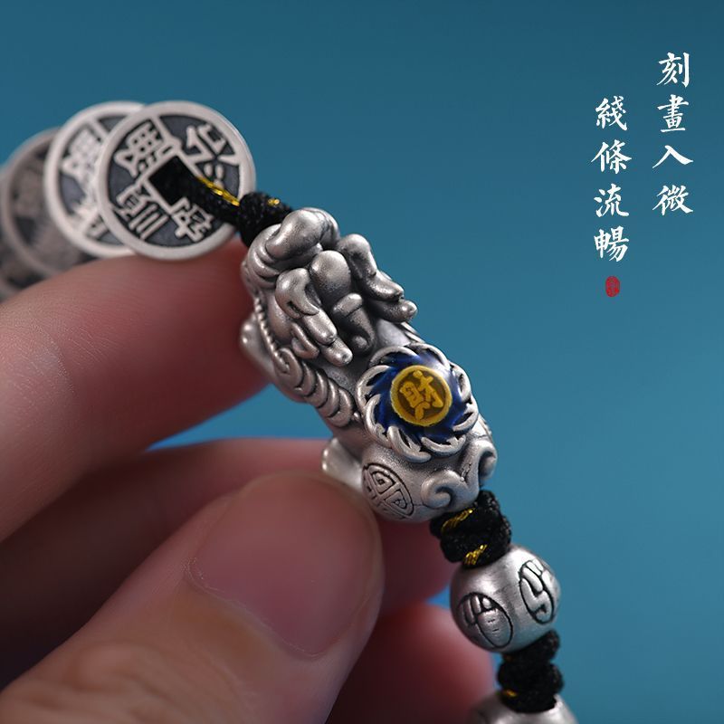 五帝钱貔貅手链男款情侣款复古风国潮手工编织铜钱古币红色手绳