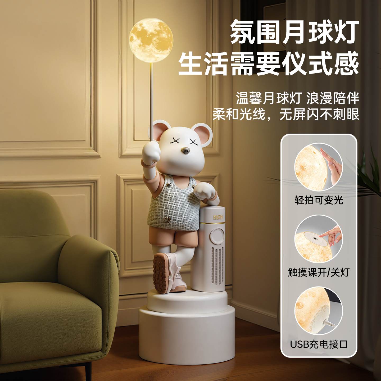 贝汉美中古风创意暴力熊落地摆件卧室床头灯装饰高级感乔迁礼物