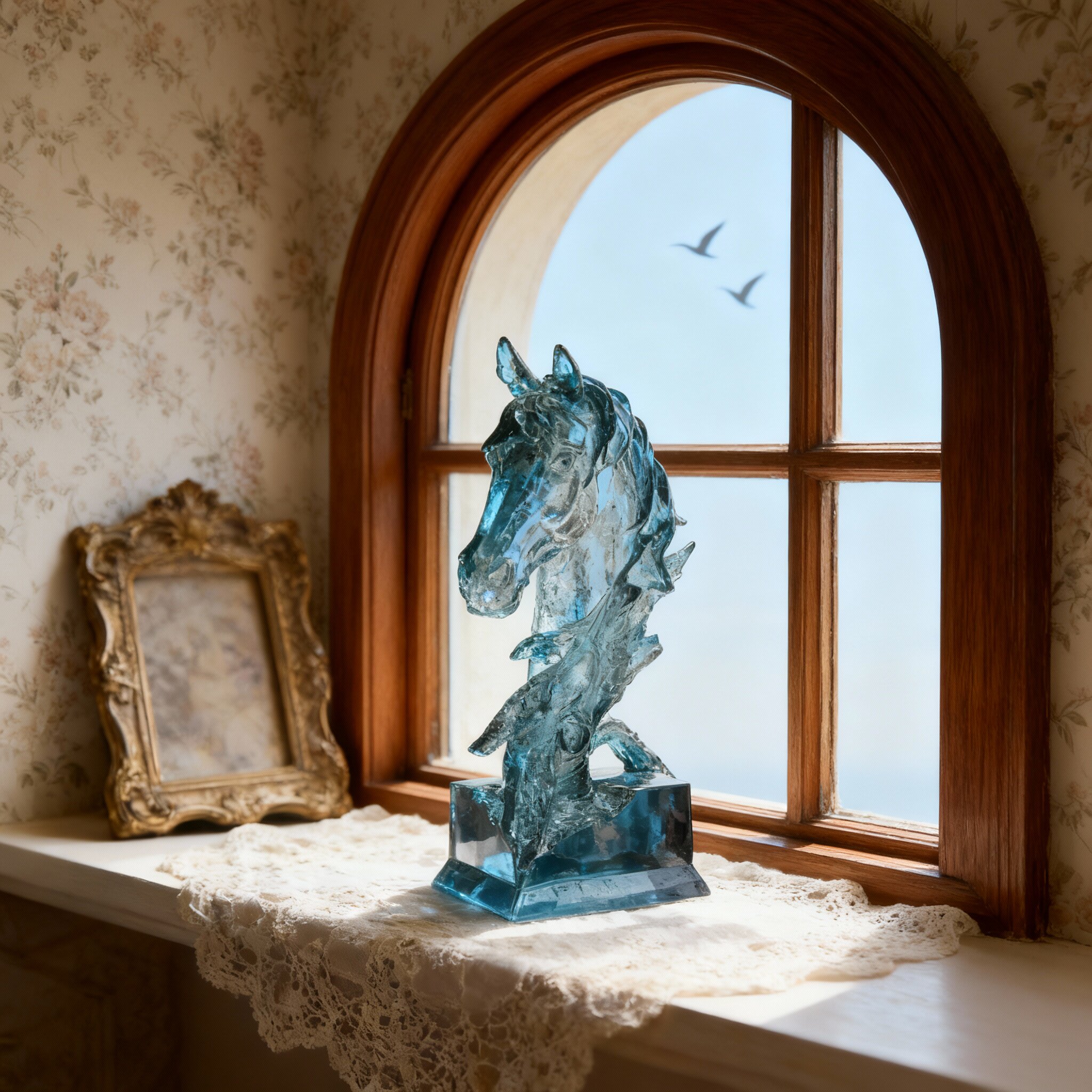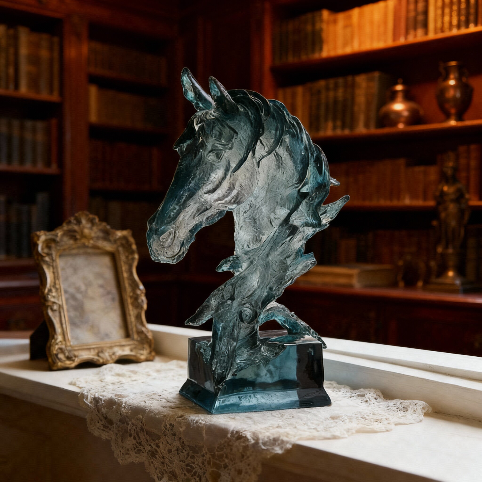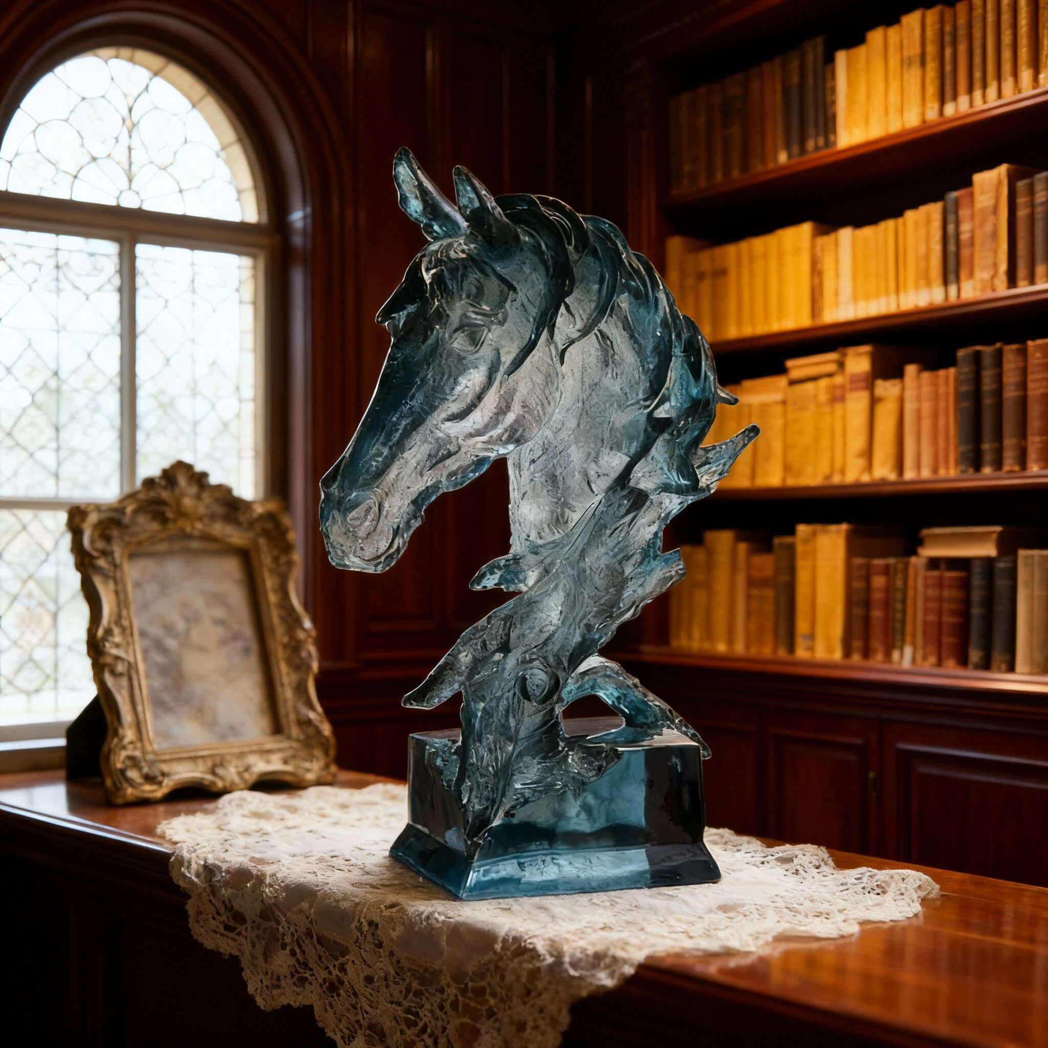 蓝色玻璃马头摆件家居装饰轻奢工艺品客厅书房装饰品