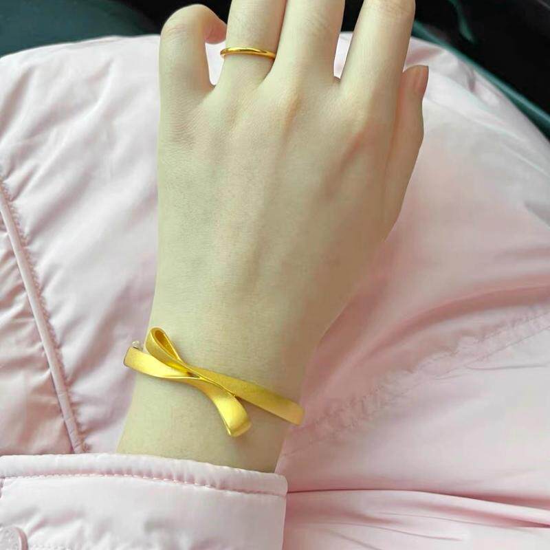 个性定制越南沙金轻奢蝴蝶结女士手镯黄铜镀金手环金店同款不掉色