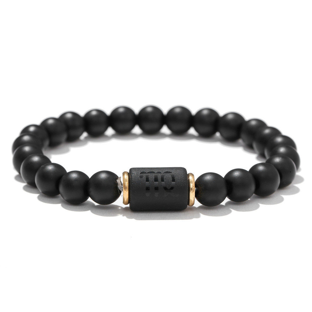 跨境佛珠弹力手链 欧美十二星座黑色磨砂黑玛瑙串珠情侣手链