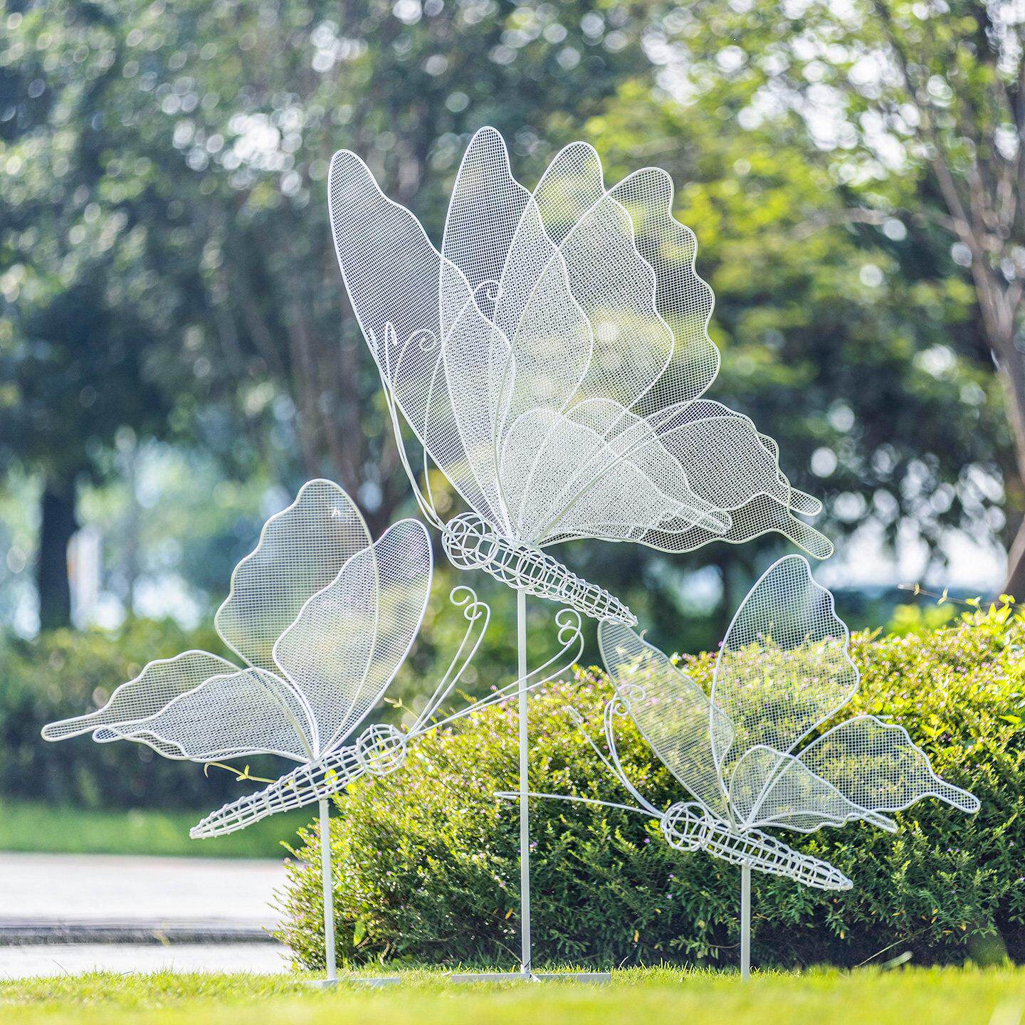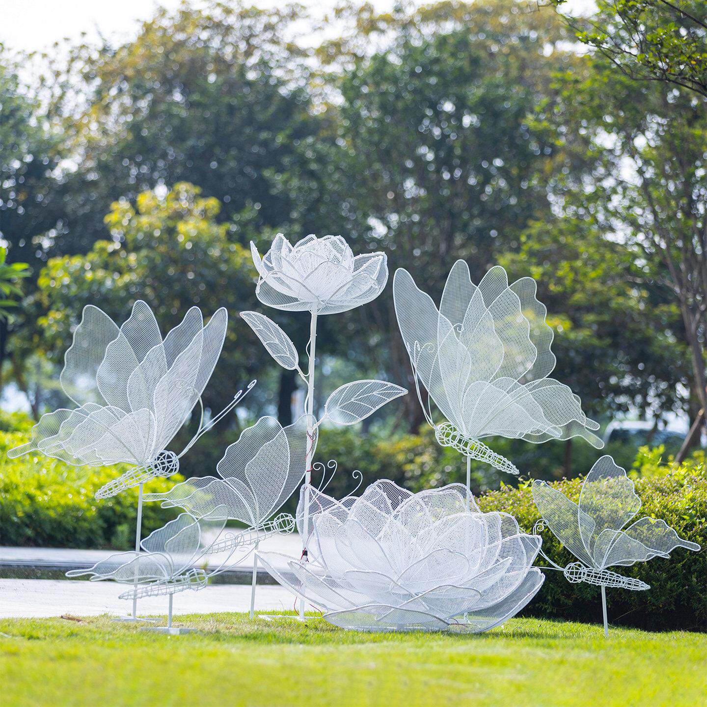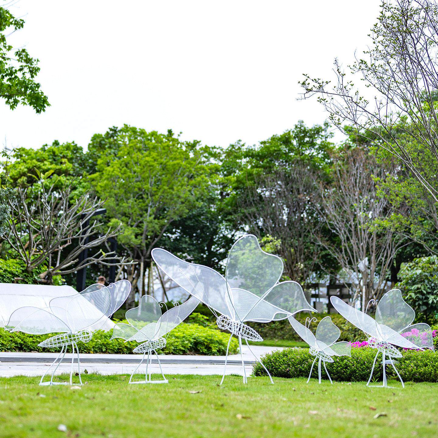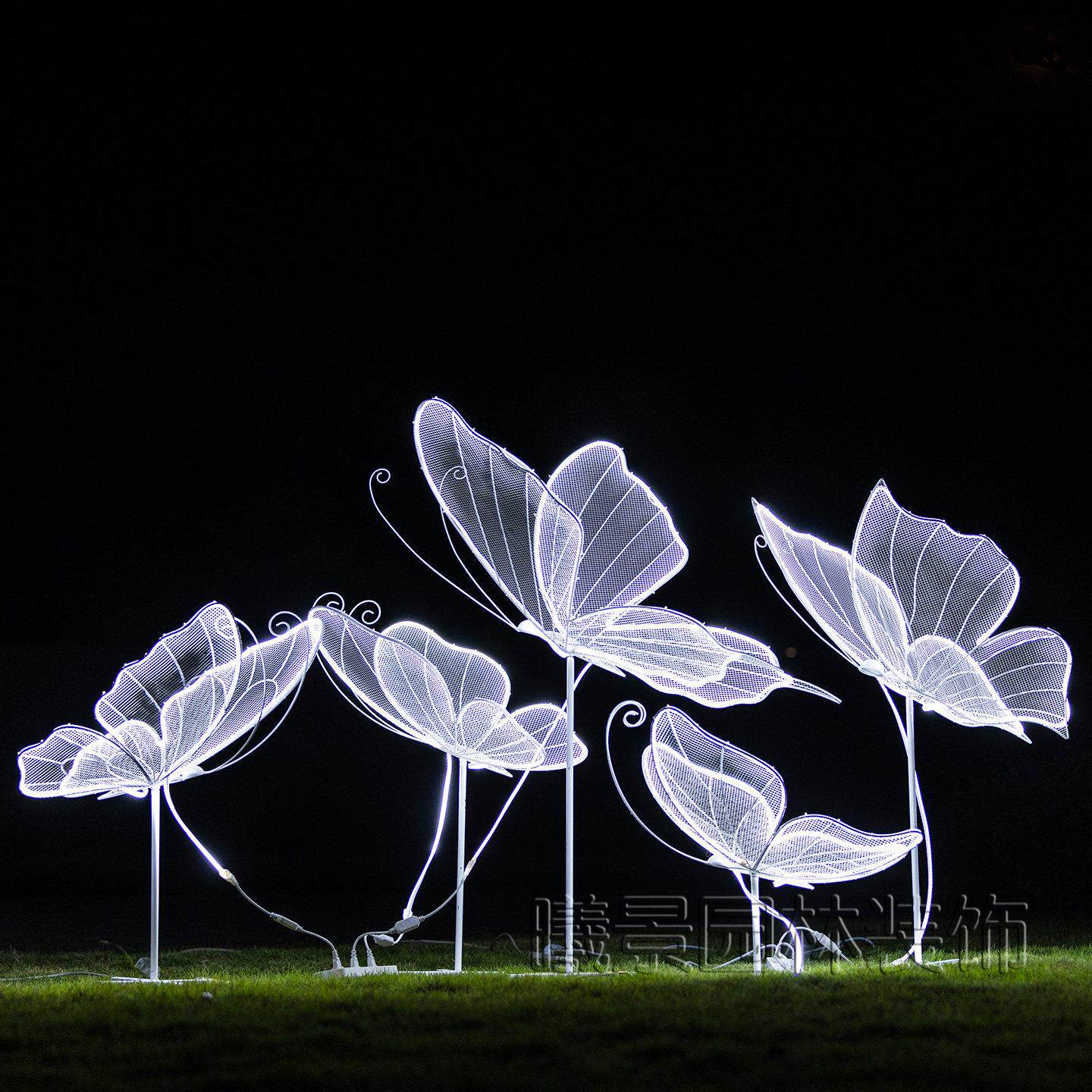 户外不锈钢铁艺镂空蝴蝶雕塑公园林社区草坪发光装饰金属昆虫摆件