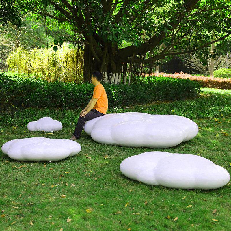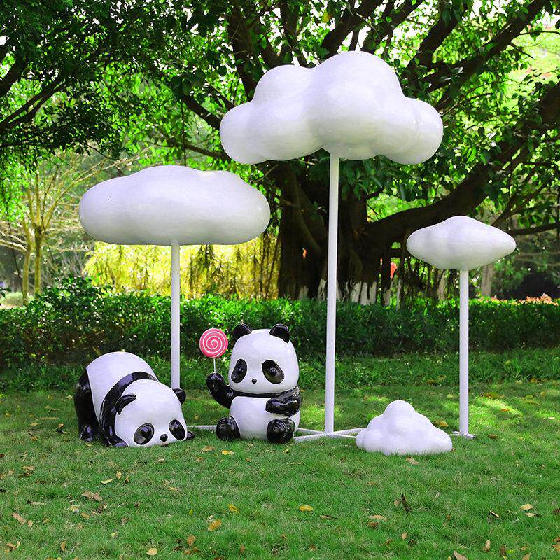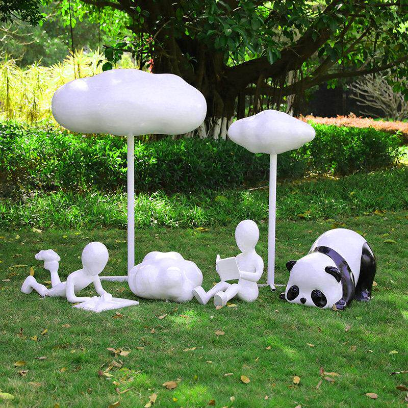 户外玻璃纤维模拟云雕塑景观社区草坪购物中心熊猫阅读创意展示摆