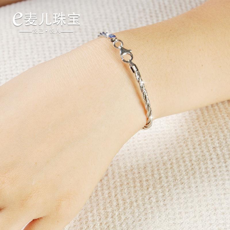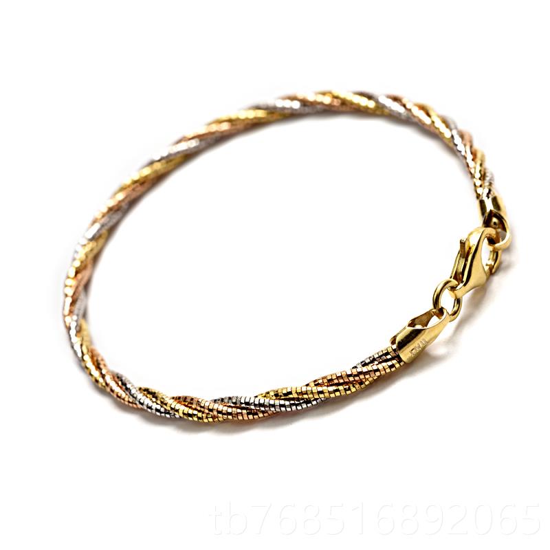 高档意利银工艺银925纯银大手环女 三线三色彩镭射闪光弹力手镯百