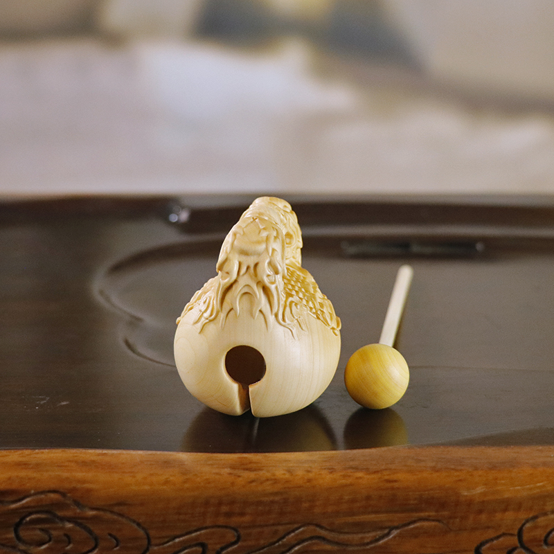 现货黄杨木雕刻木质双龙图案带薪摸鱼打工人功德套装玩趣静心木鱼