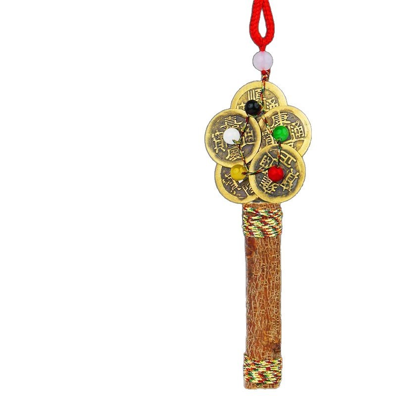 正宗肥城东南枝桃木挂件五帝铜钱镇防宅桃木剑驱压惊婴儿宝宝吓邪
