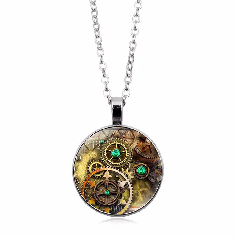 机械表齿轮图案时光宝石吊坠项链女百搭欧美复古毛衣链饰品
