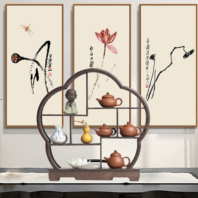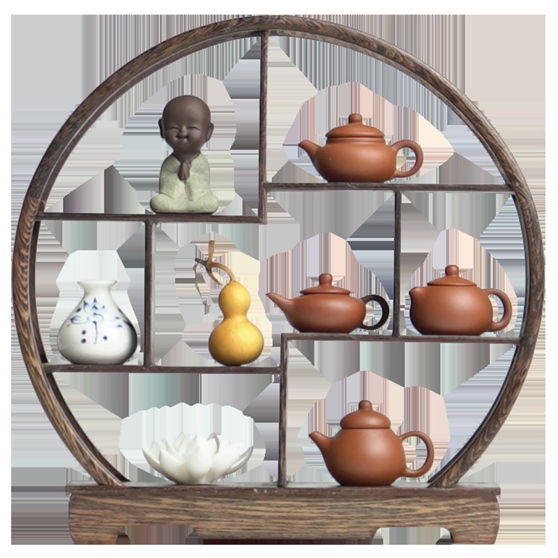 新中式茶壶博古架软装饰品家居客厅玄H关桌面办公室柜子实木小摆