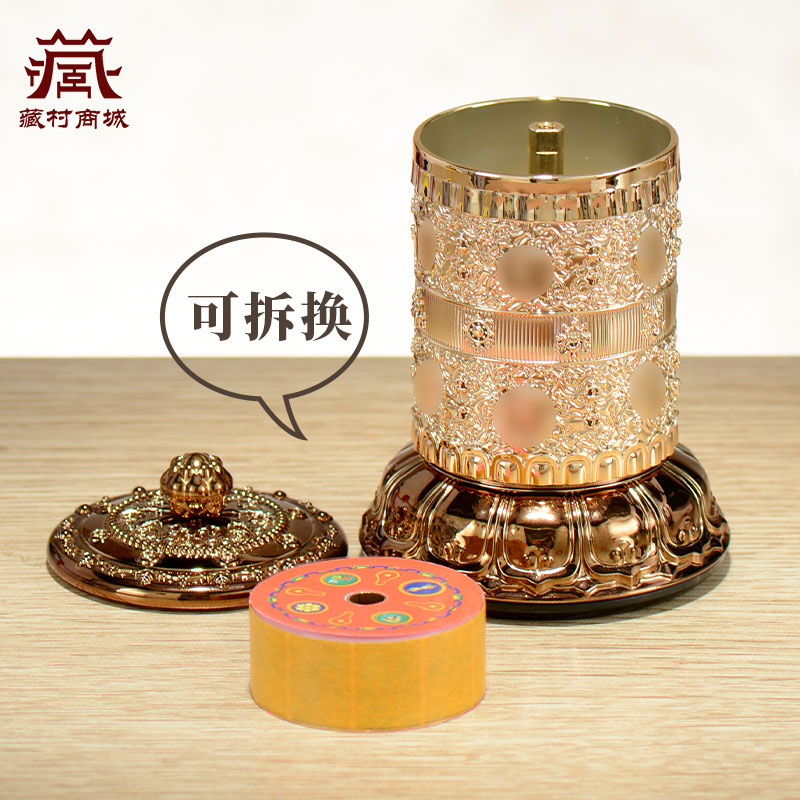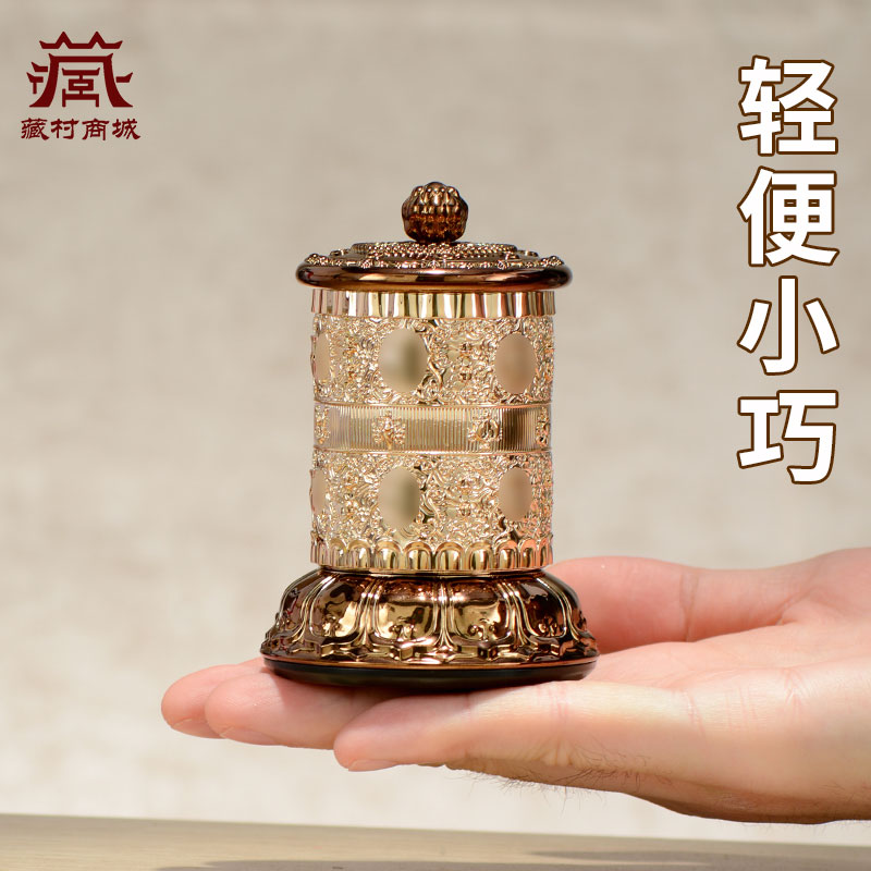 藏村车载太阳能蓄能转轮家用电动转筒车内摆件仪表台转动金桶摆件