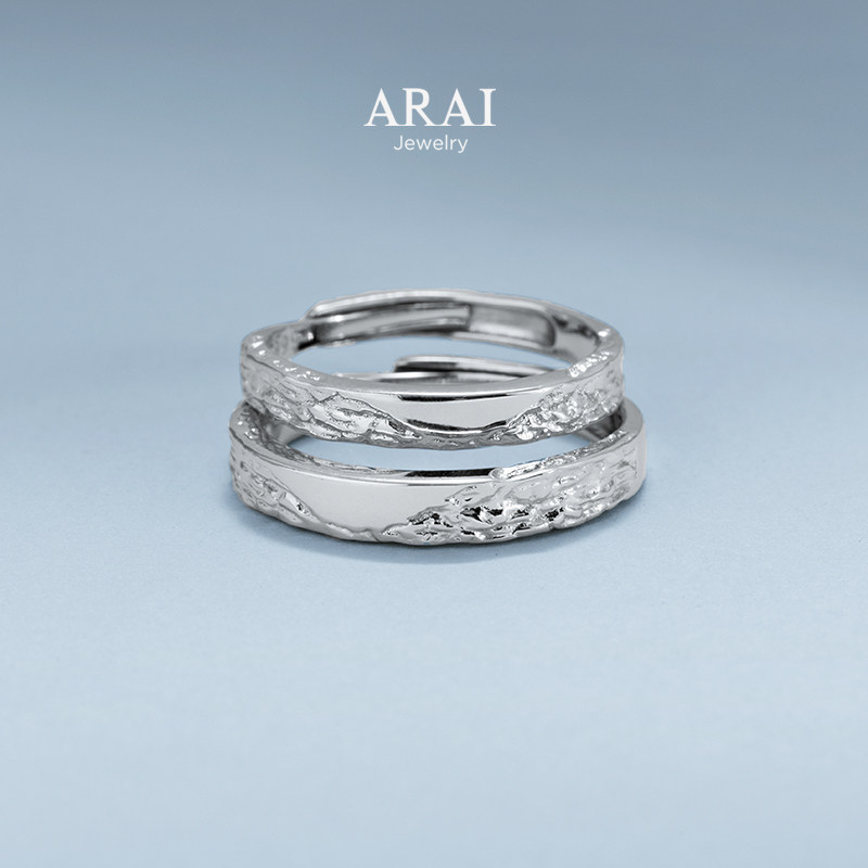 ARAI999足银男女戒指简约原创小众设计月光白雪活口情侣单只戒指