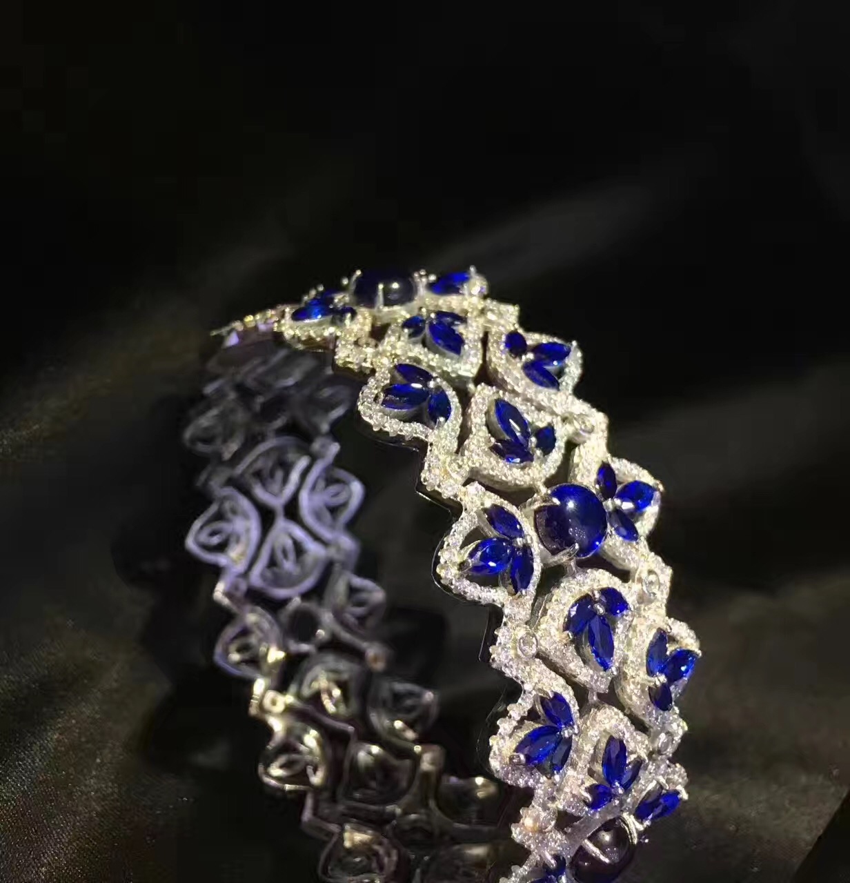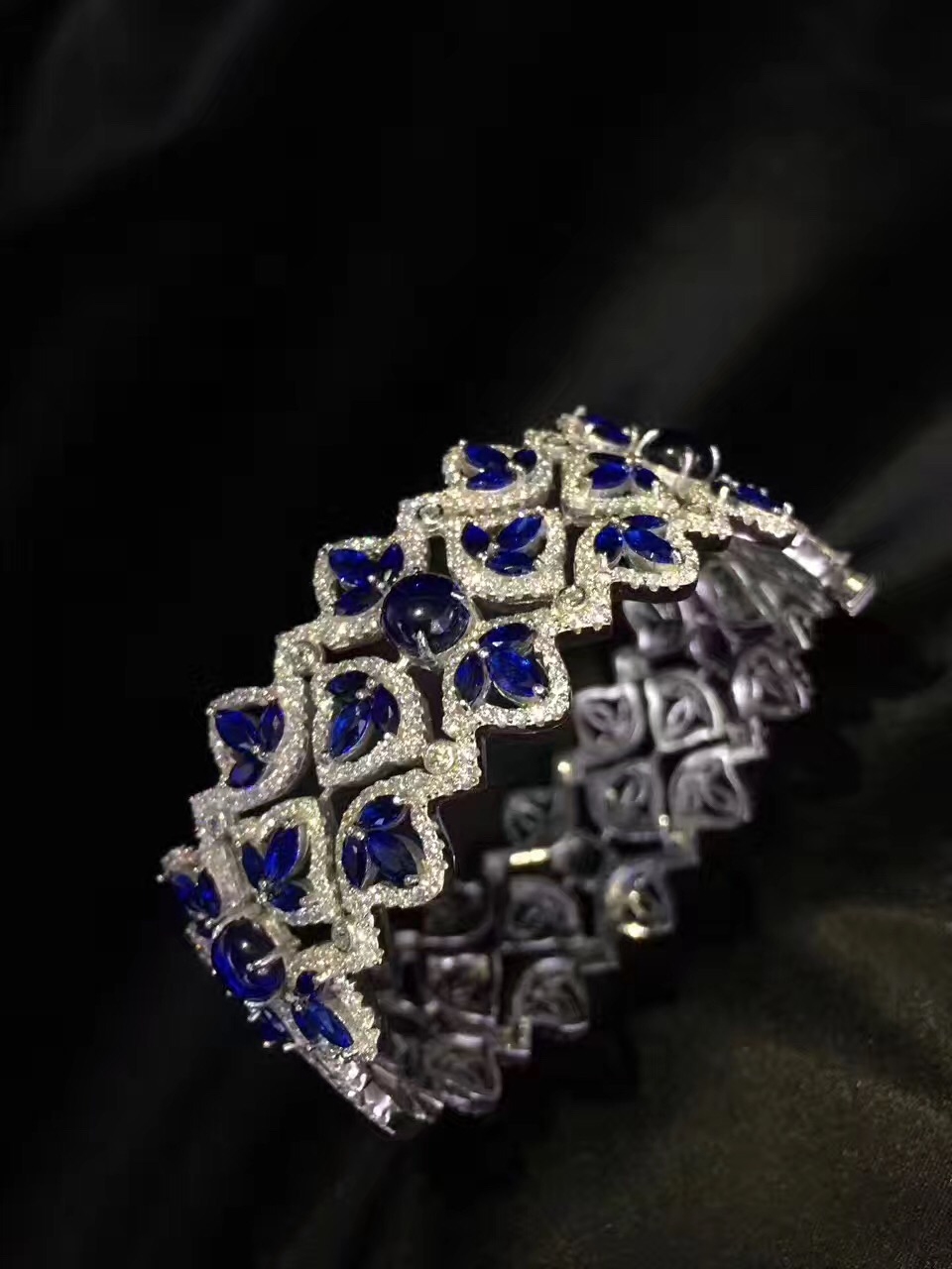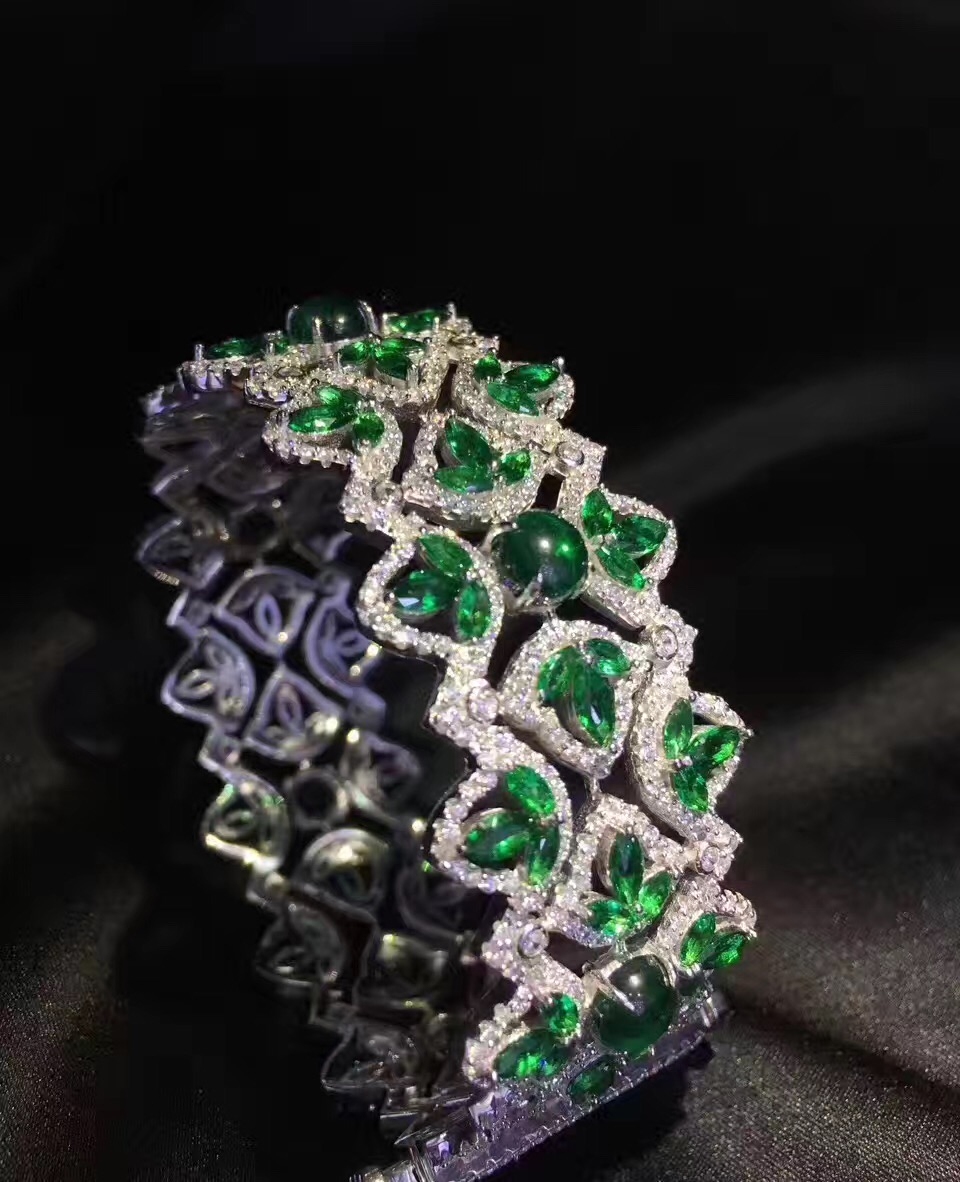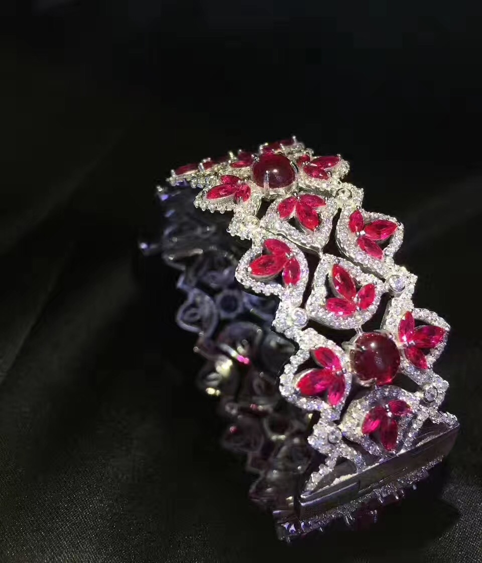 高档 925纯银镶嵌锆石手镯 宽 红色 绿色 蓝色 party 晚晏