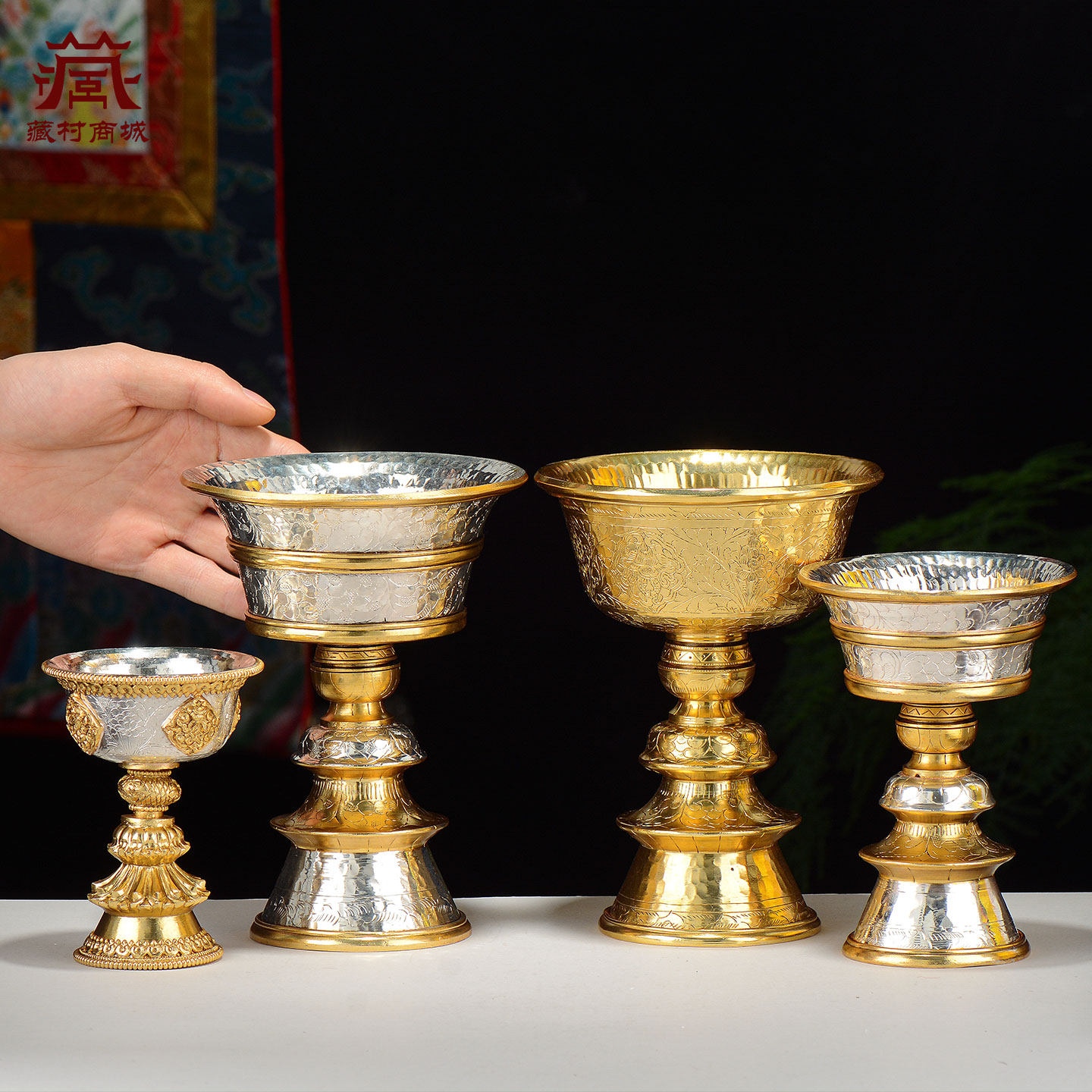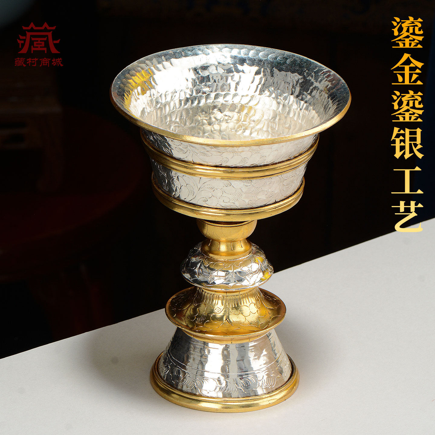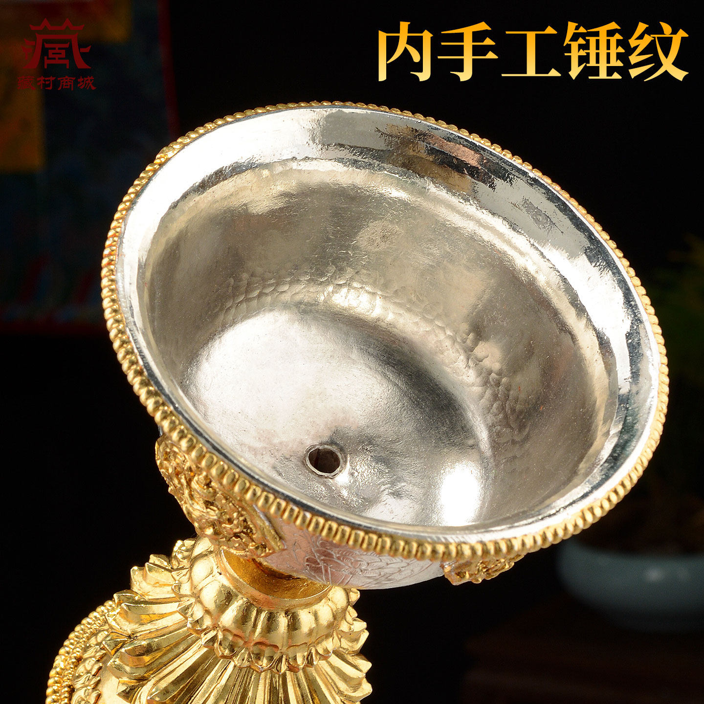 藏村尼泊尔鎏金鎏银酥油灯座室内家用长明灯灯盏蜡烛台摆件