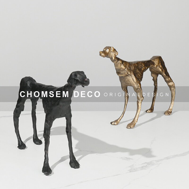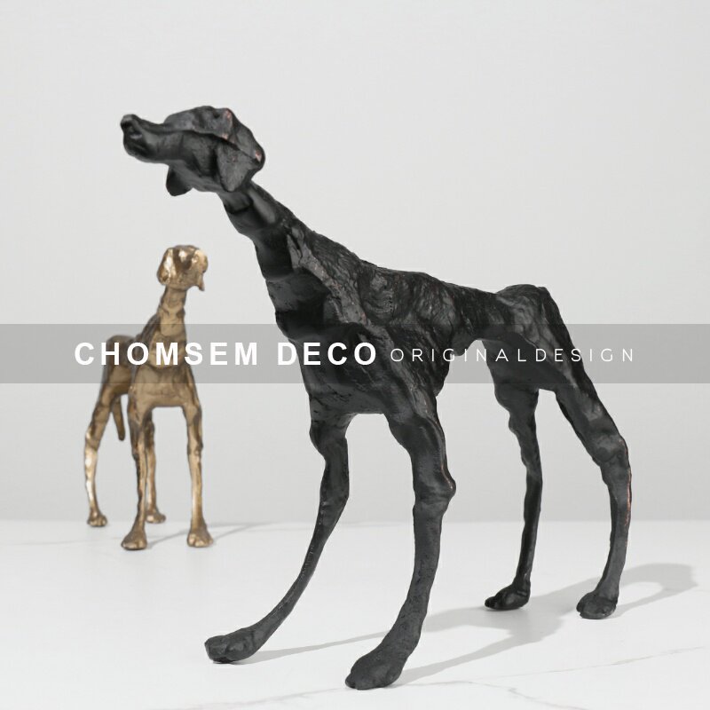 现代轻奢样板房间金属猎犬动w物摆件售楼处软装饰品客厅玄关柜摆