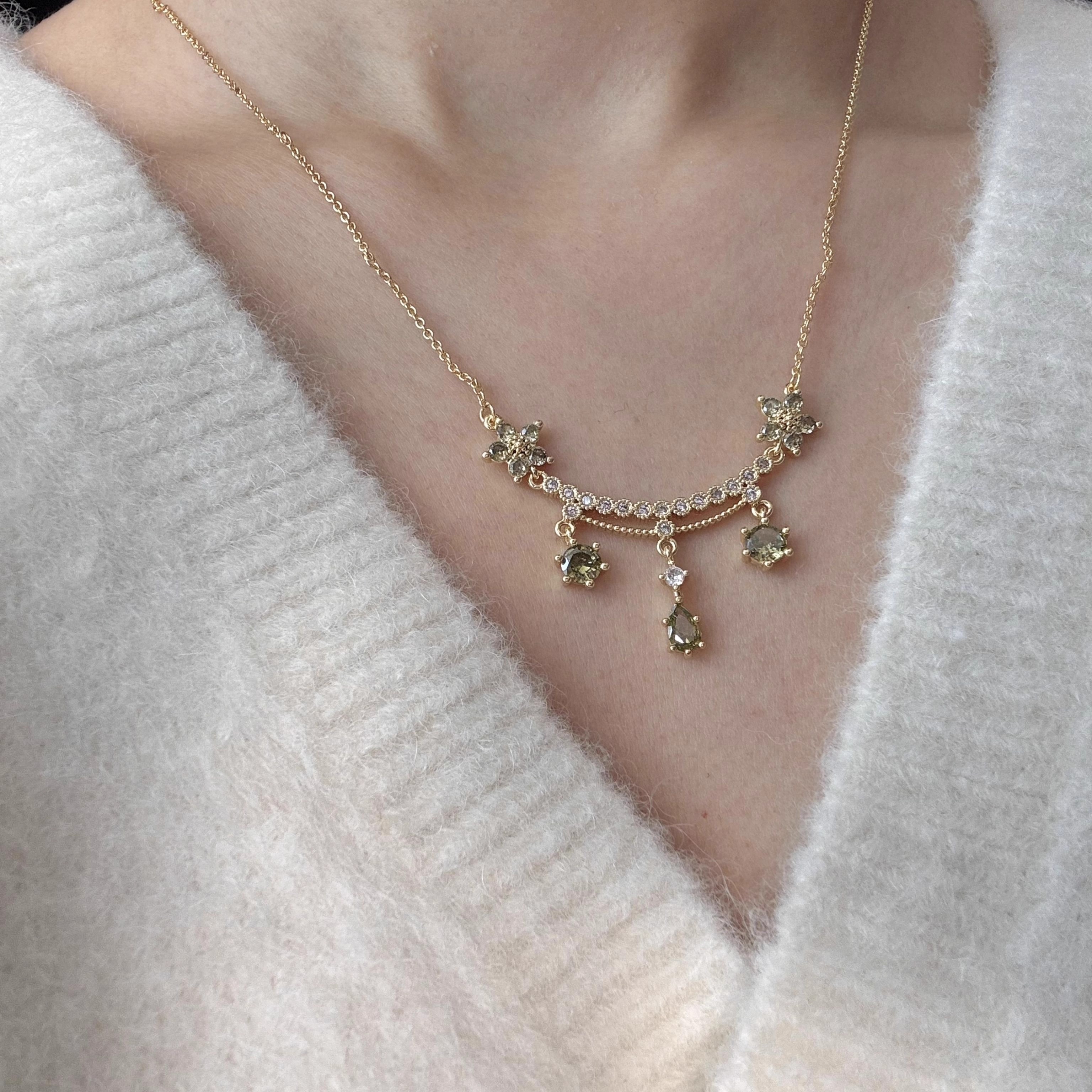 「拜占庭晨曦」vintage复古橄榄绿宝石轻奢高级感宫廷项链/锁骨链