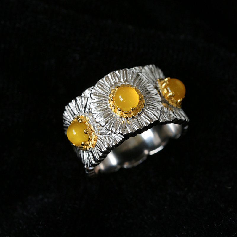 TU JEWELRY 布契拉提风雏菊花戒指女小众设计925银天然石宽版指环