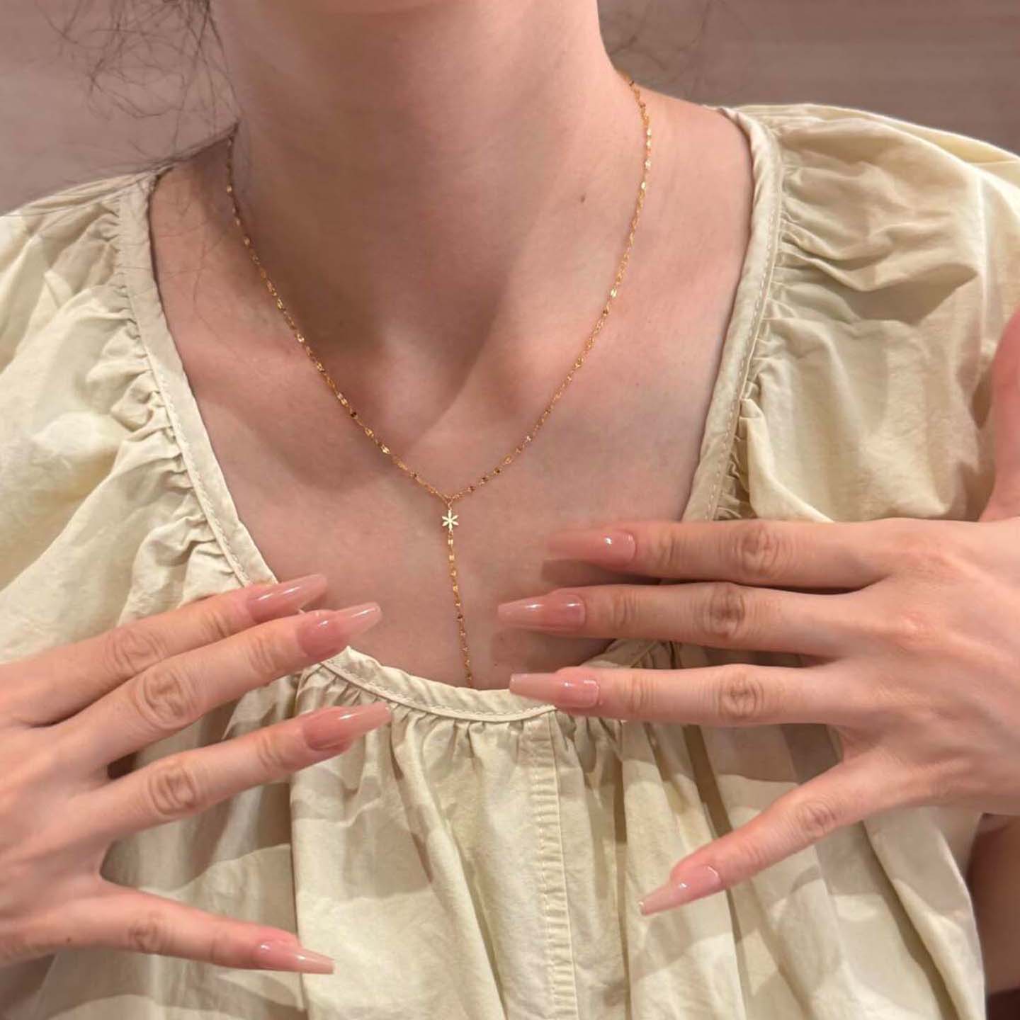 爆闪金色y字雪花流苏项链女款2025新款高级感一款两戴气质刀片链