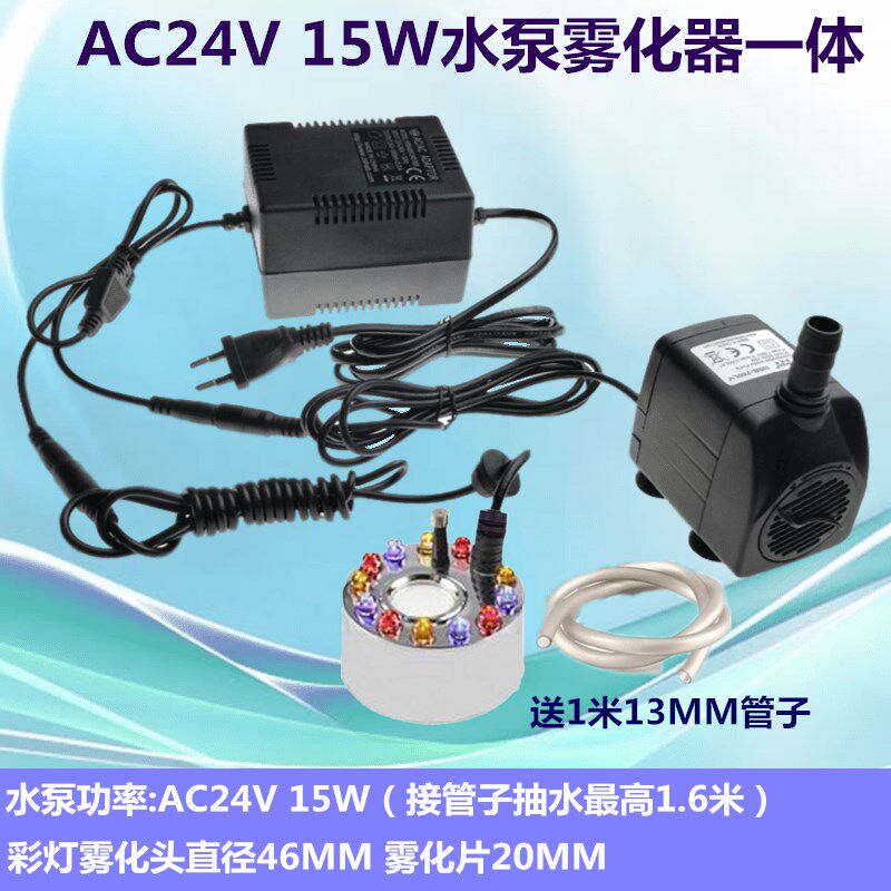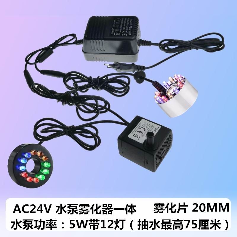 24V潜水泵雾化加湿器一体假山工艺品流水雾化器 鱼缸盆景摆件配件